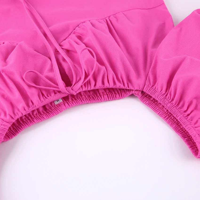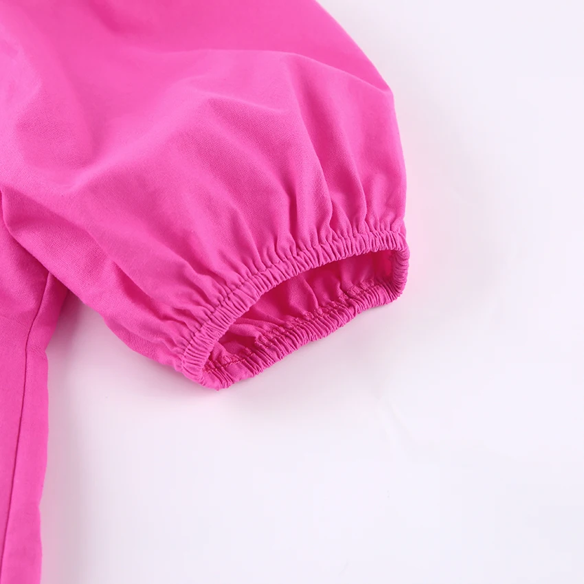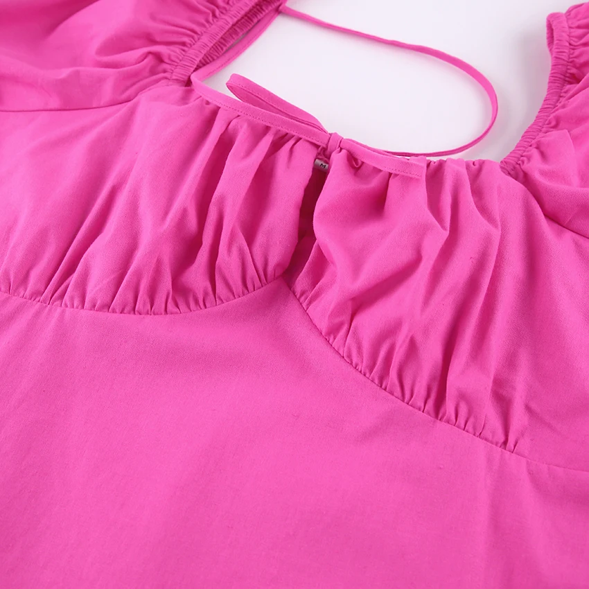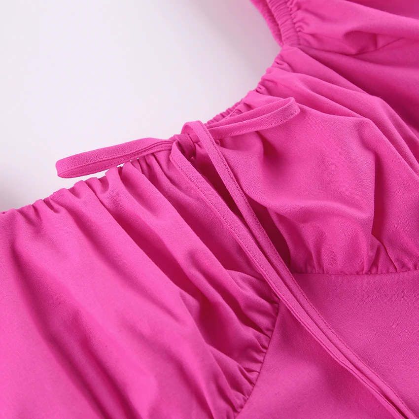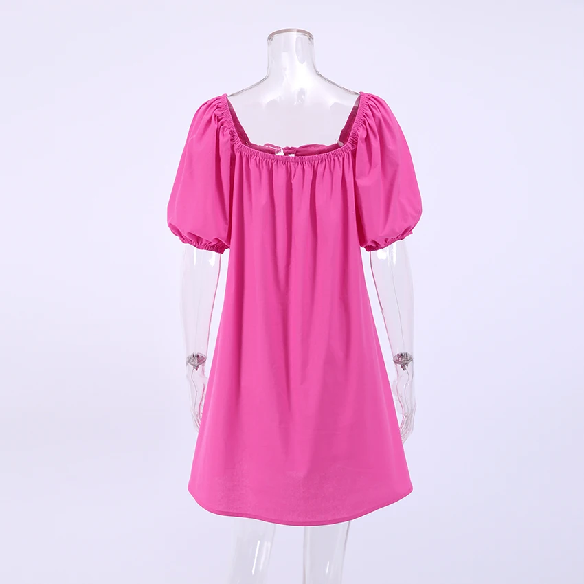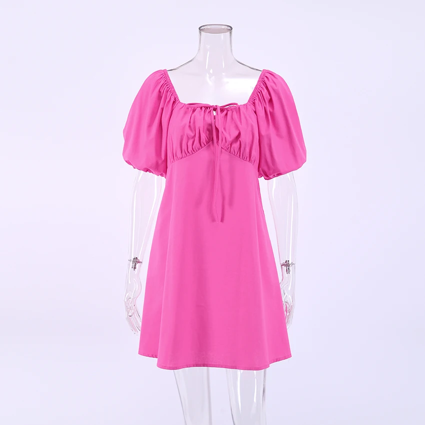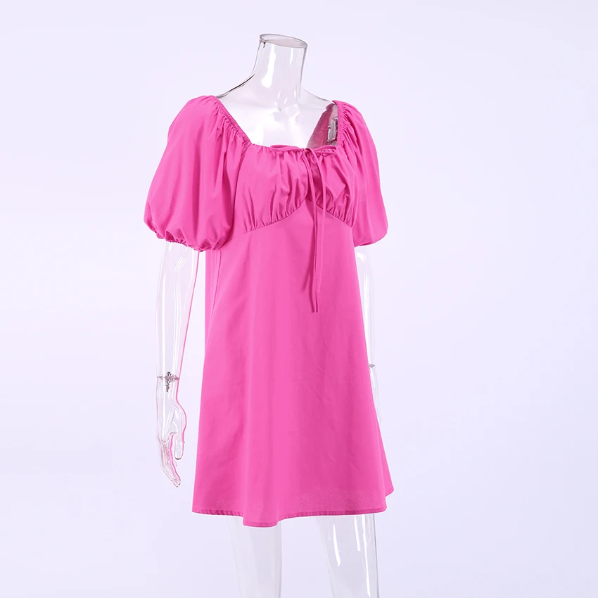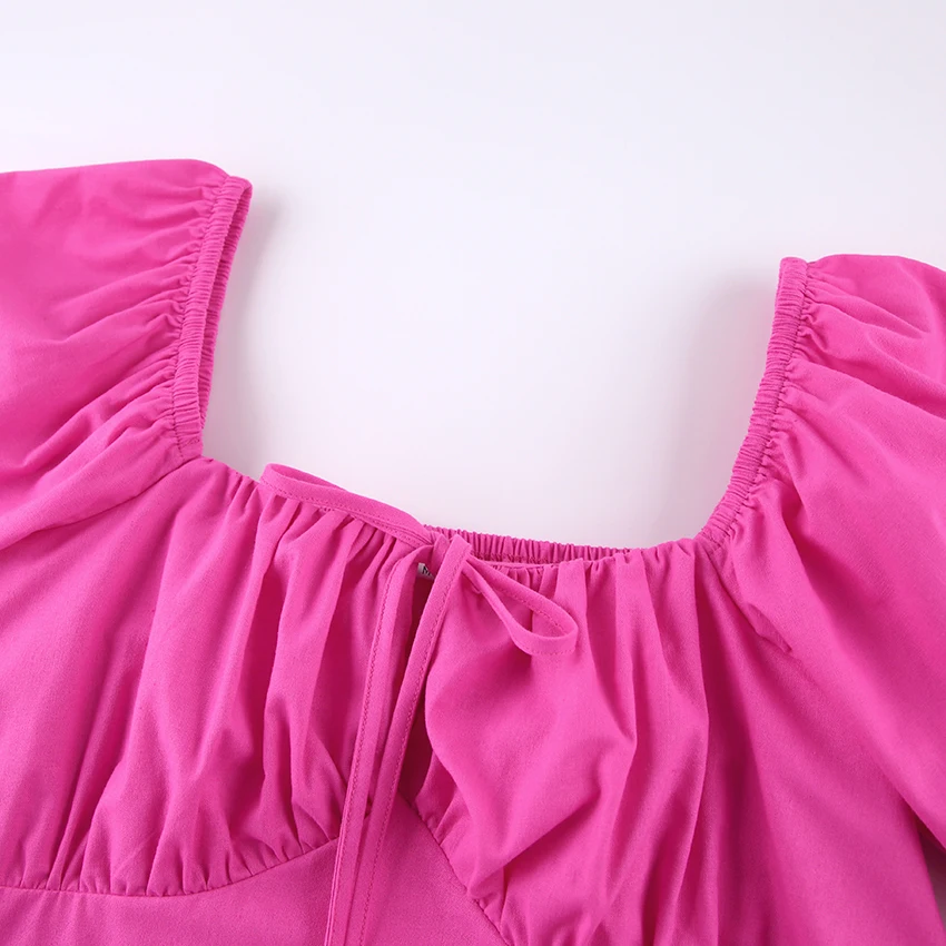 Bclout Beach Holiday Casual Party Vestidos 2023 Puff Sleeve Square Collar Rose Red Tie Up Loose Summer Women Cotton Dress