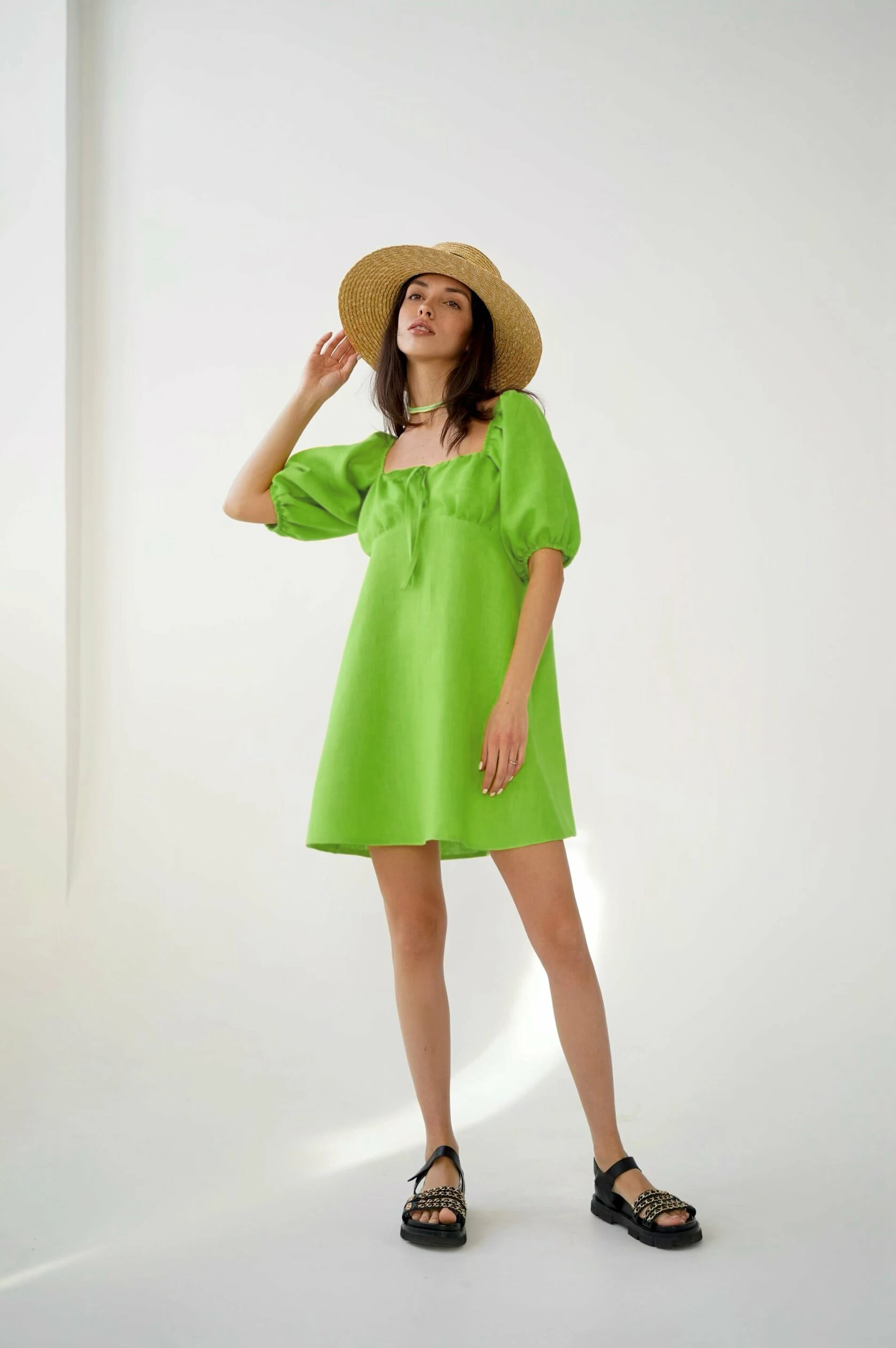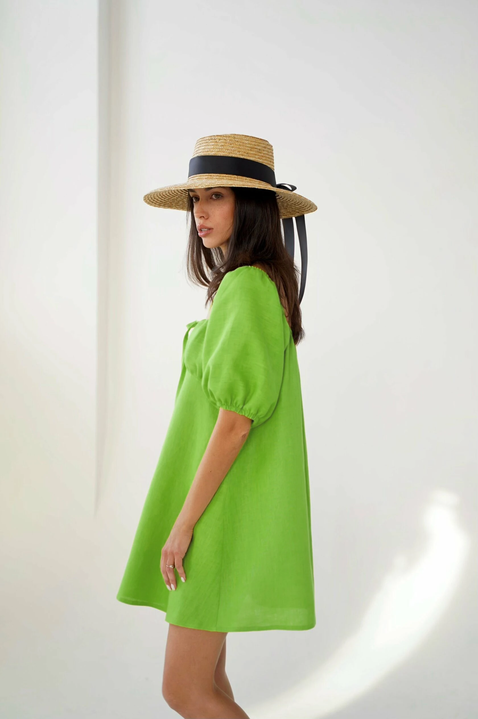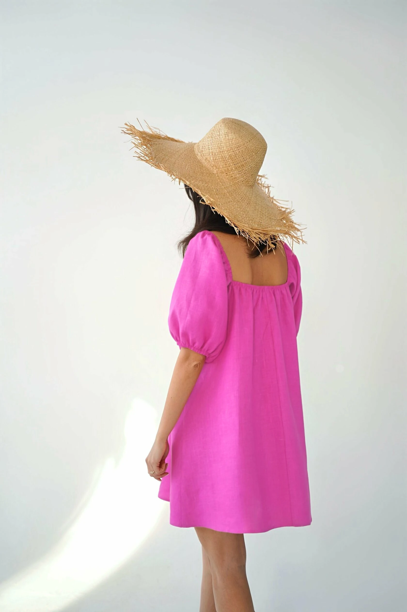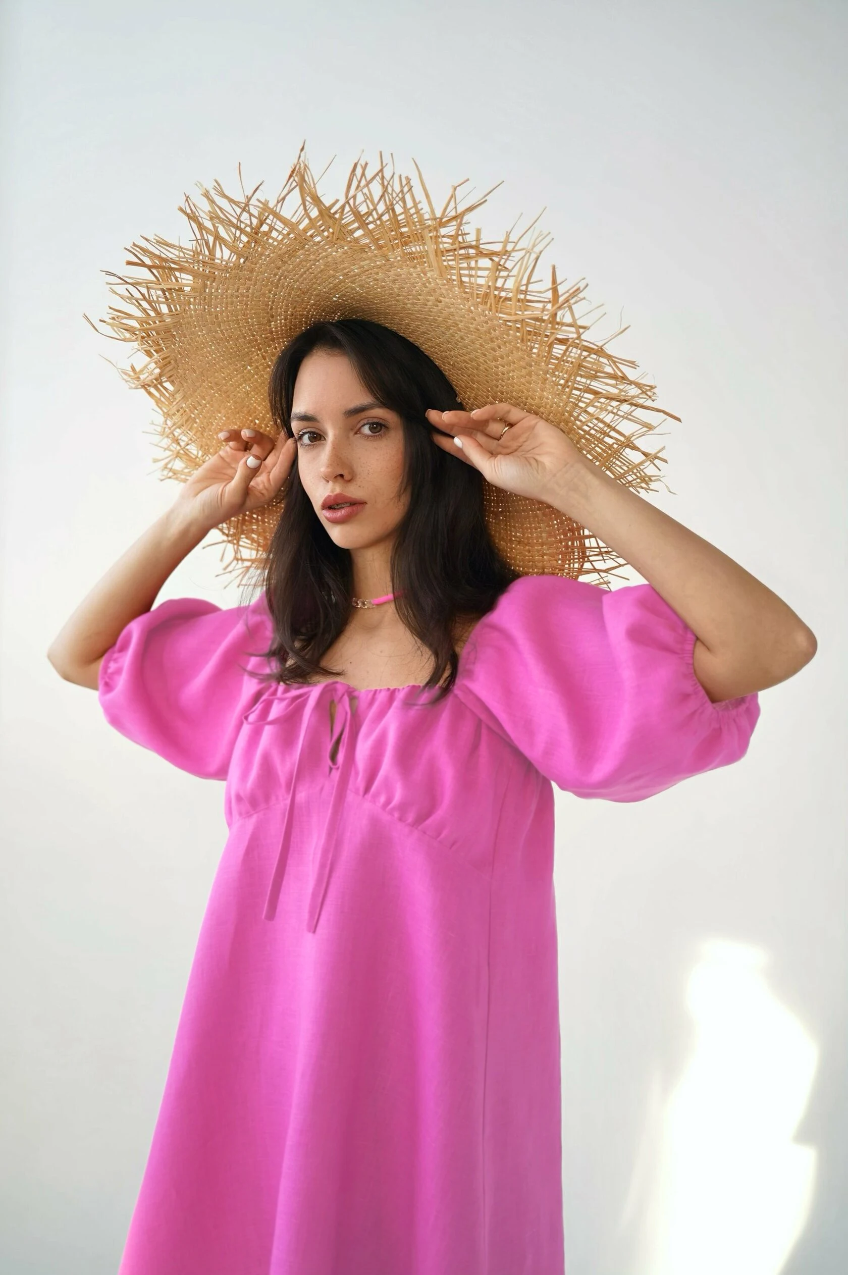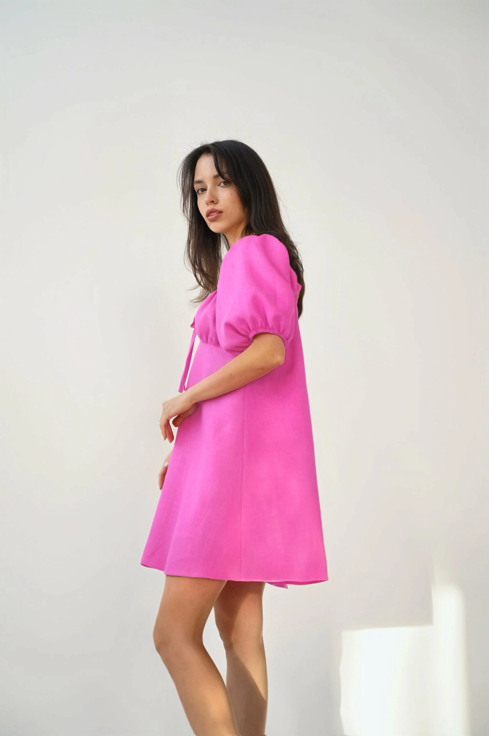 Bclout Beach Holiday Casual Party Vestidos 2023 Puff Sleeve Square Collar Rose Red Tie Up Loose Summer Women Cotton Dress