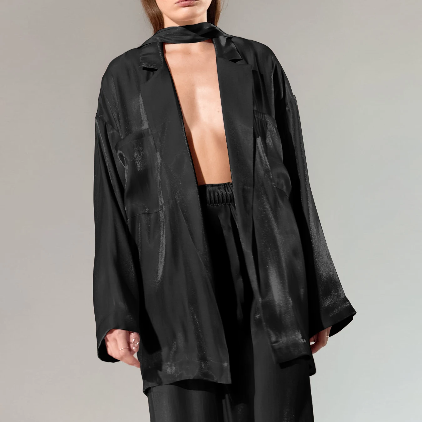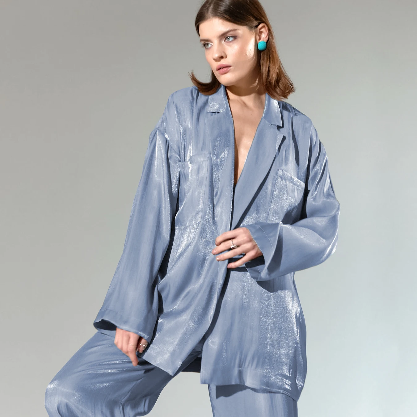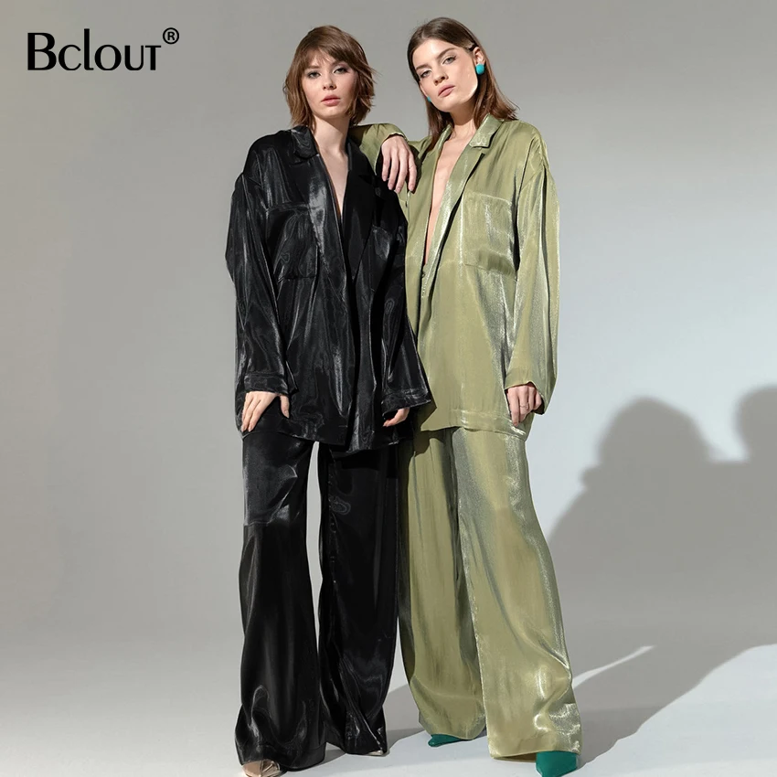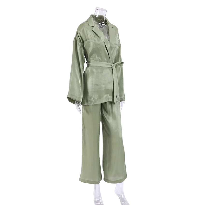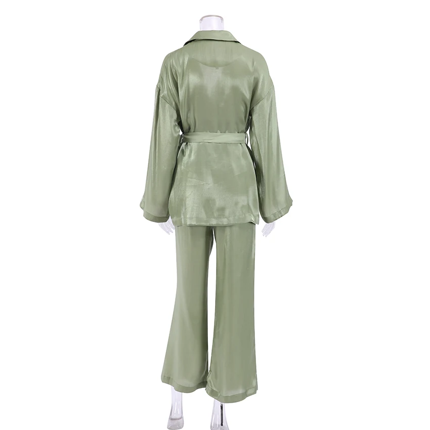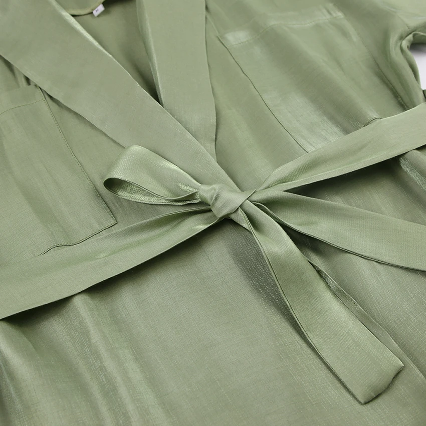 Bclout Casual Nightgown Satin Nightwear Trouser Suits Pocket Women's 2 Piece Set Women Pajama Fashion Outdoor Sleepwear Robe Set