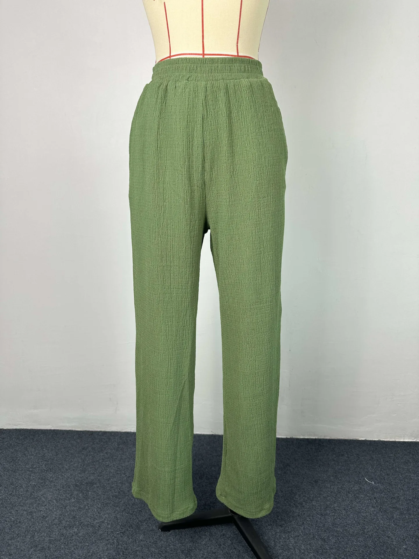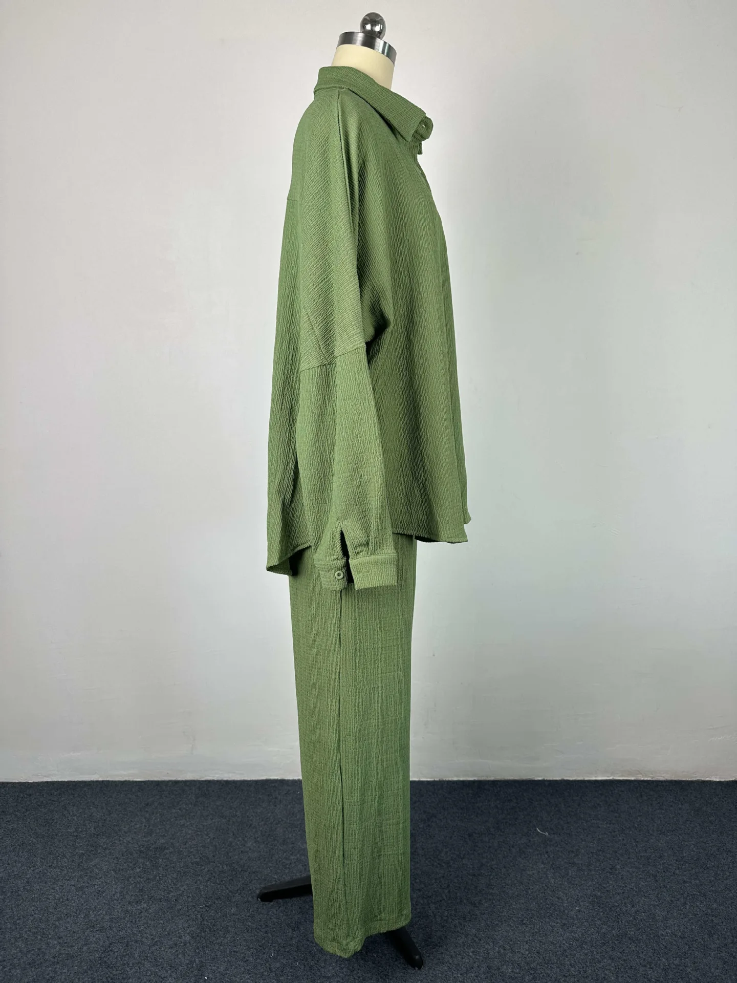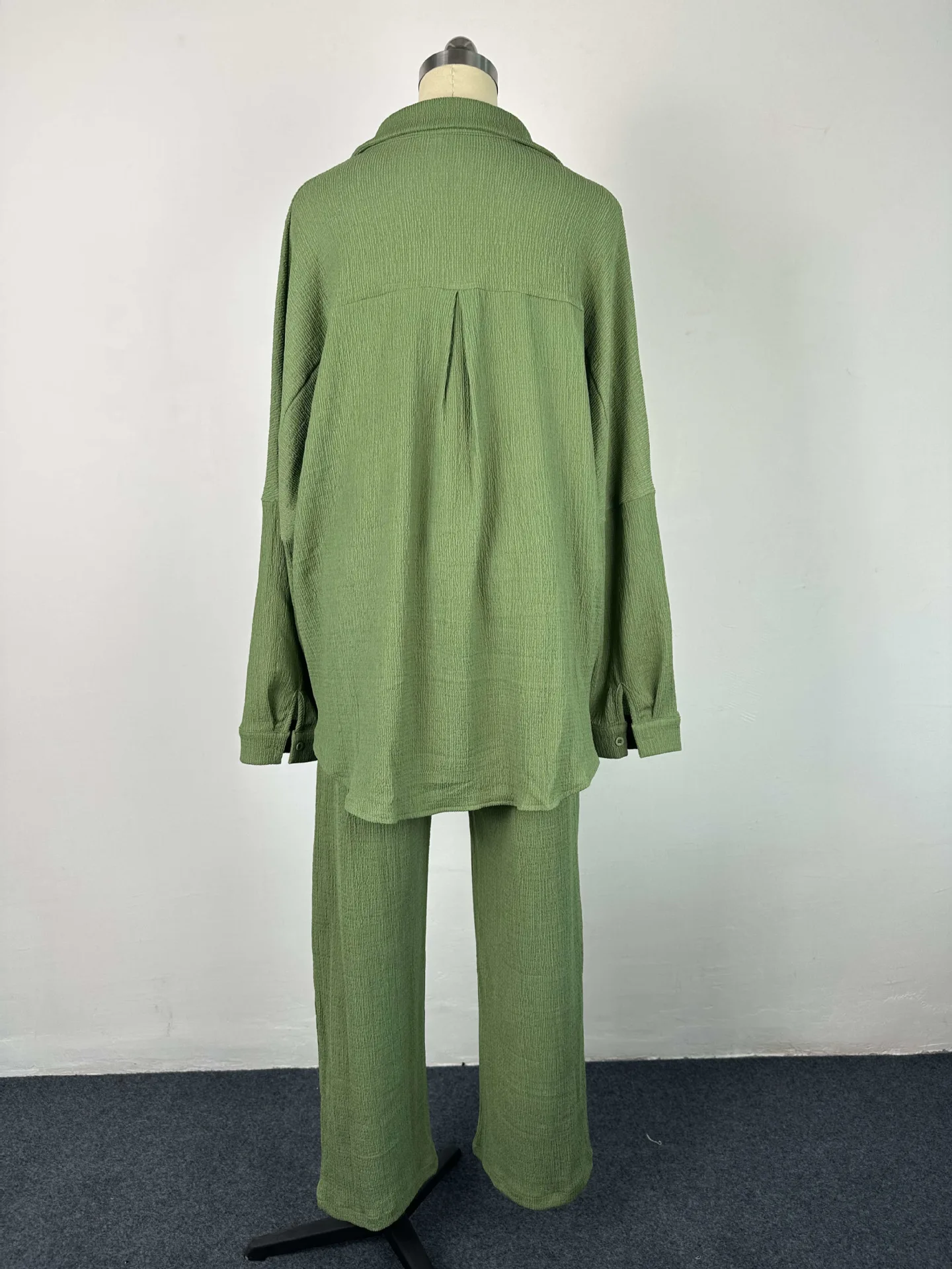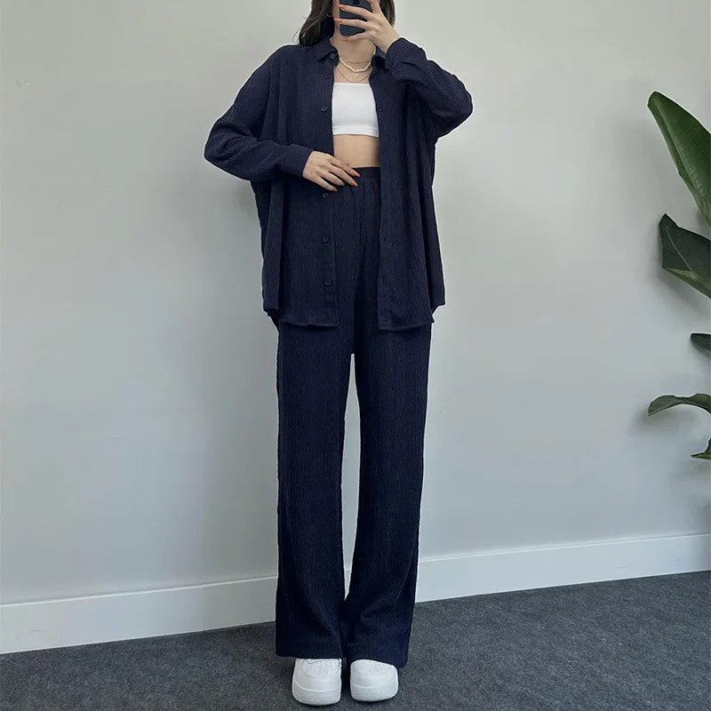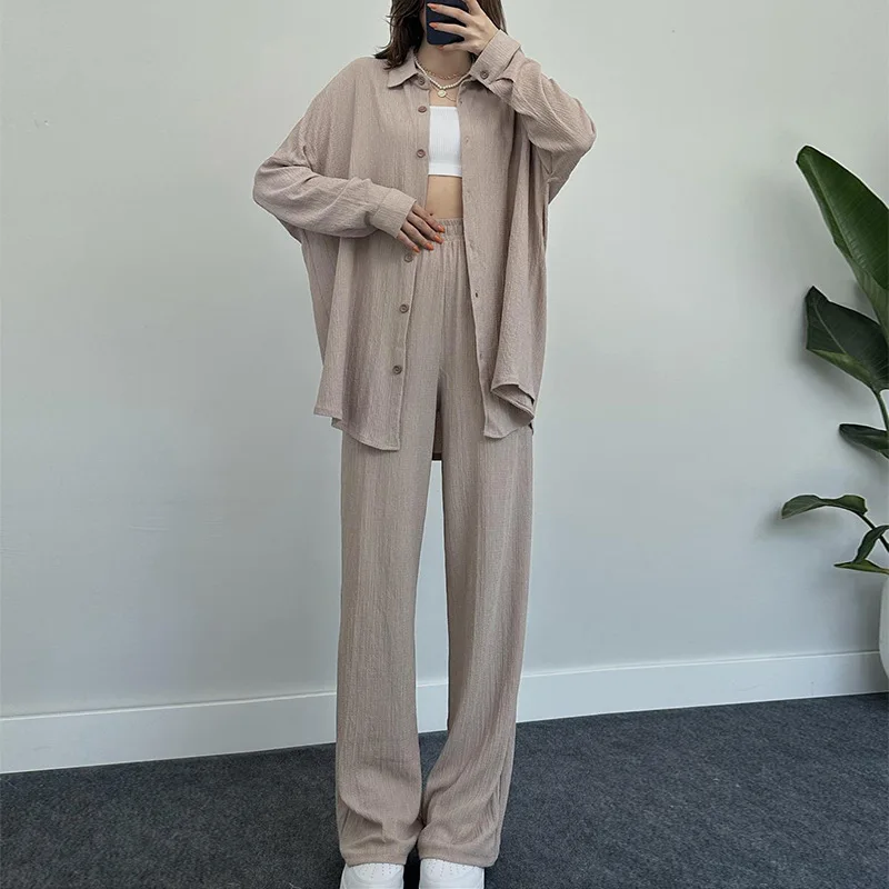 Bclout Casual Two Piece Set Solid Color Long Sleeve Shirt Wide Leg Pants 2023 Summer New Style Female Set