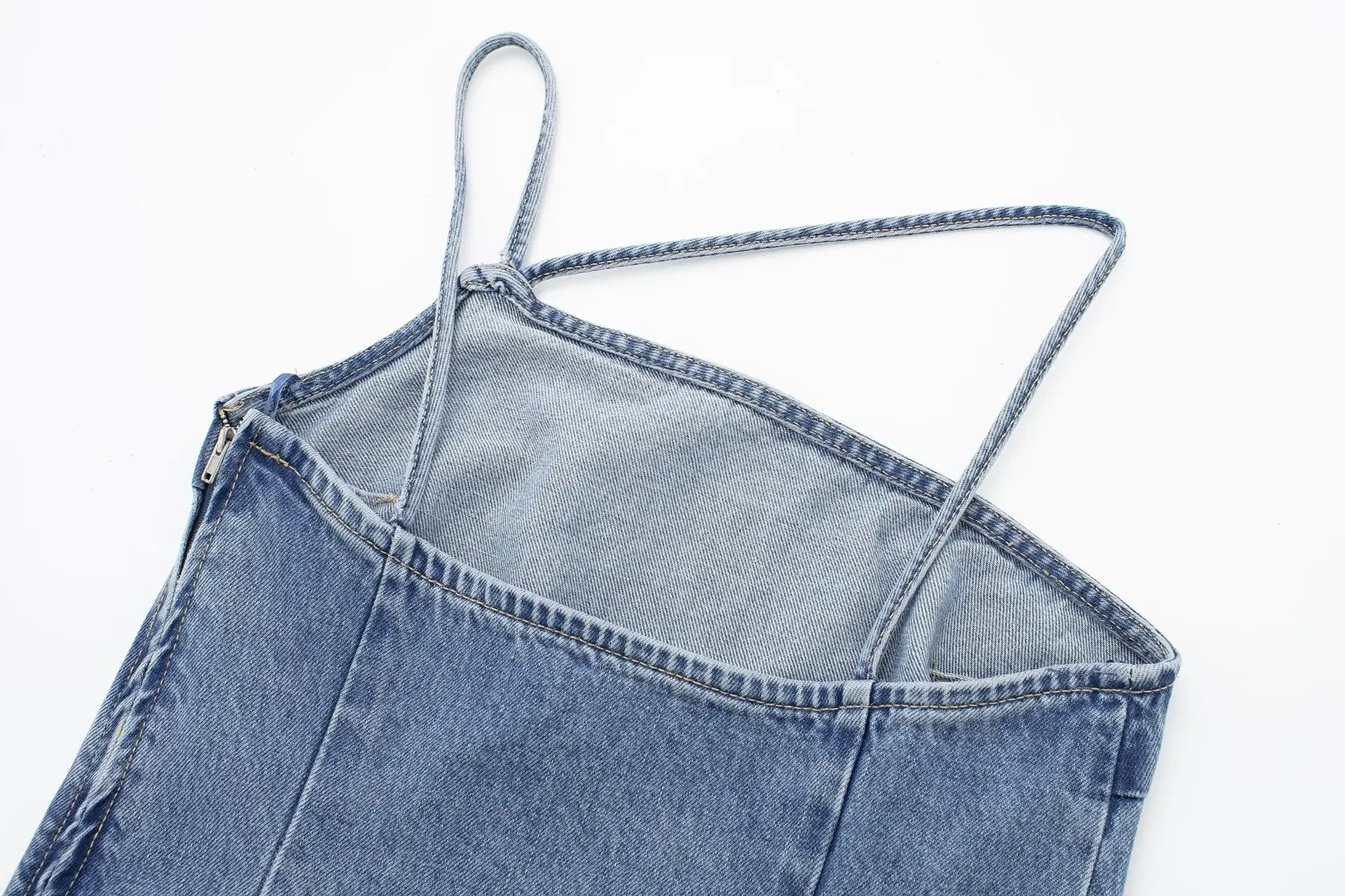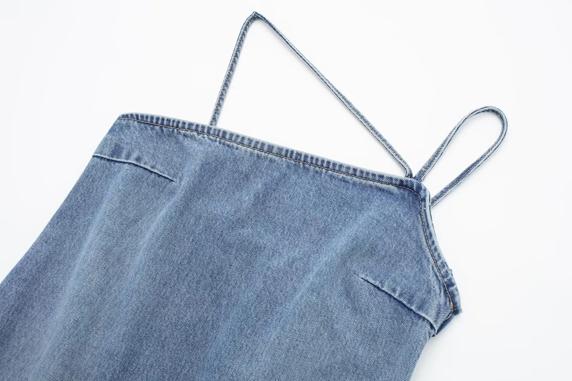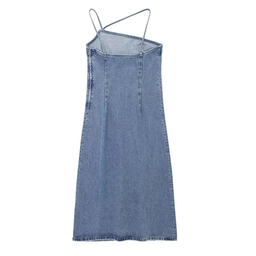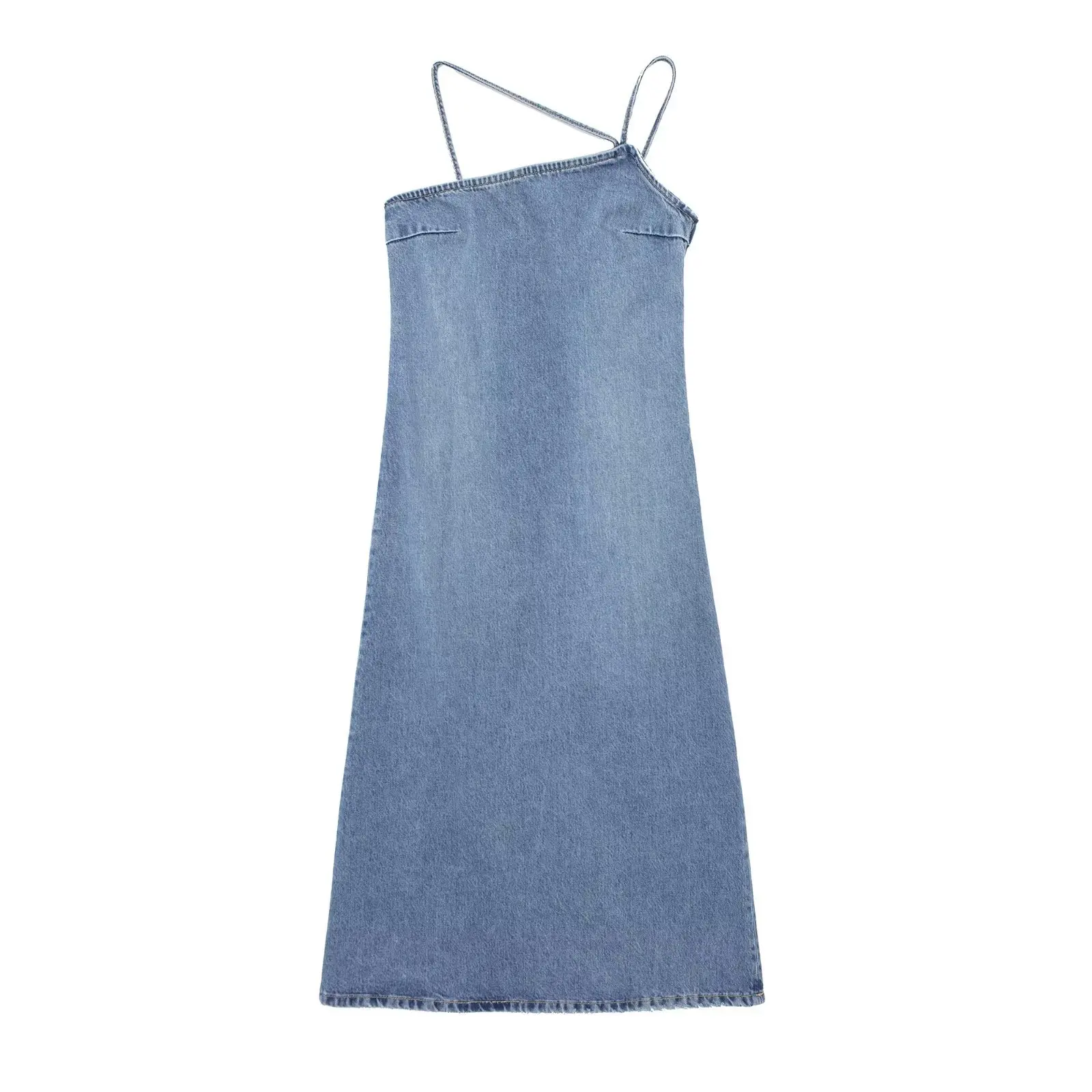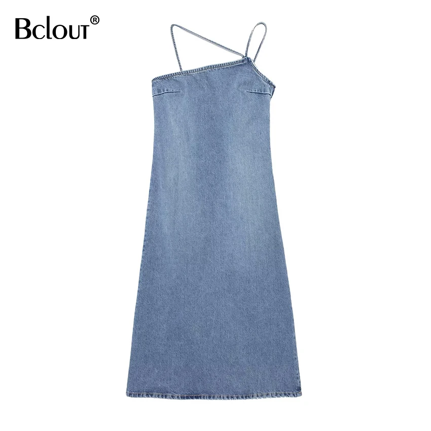 Bclout Elegant Asymmetrical Sleeveless Vestidos Street Dress 2023 Spring Summer Female Dress Women Fashion Denim Mid-Calf Dress