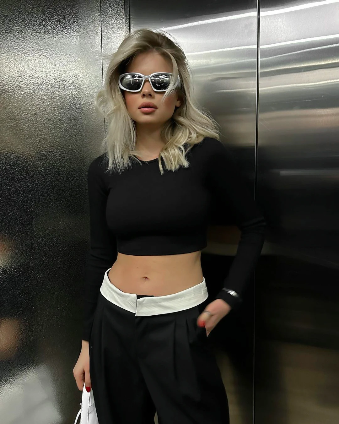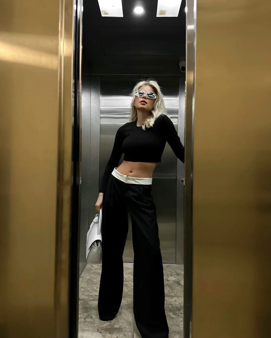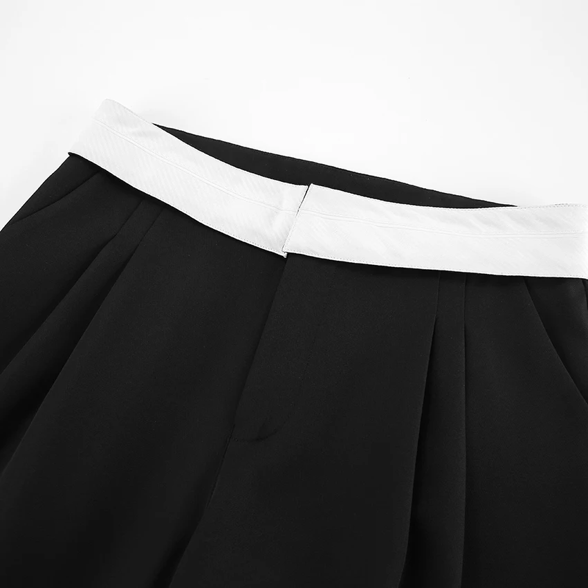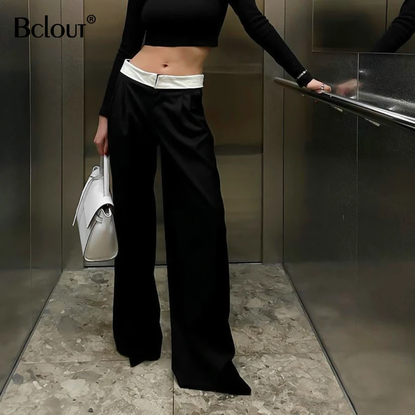 Bclout Elegant Neutral Wind High Waist Female Trousers Flip Waist Details Decoration Wide Leg Pants 2023 Spring New Pants