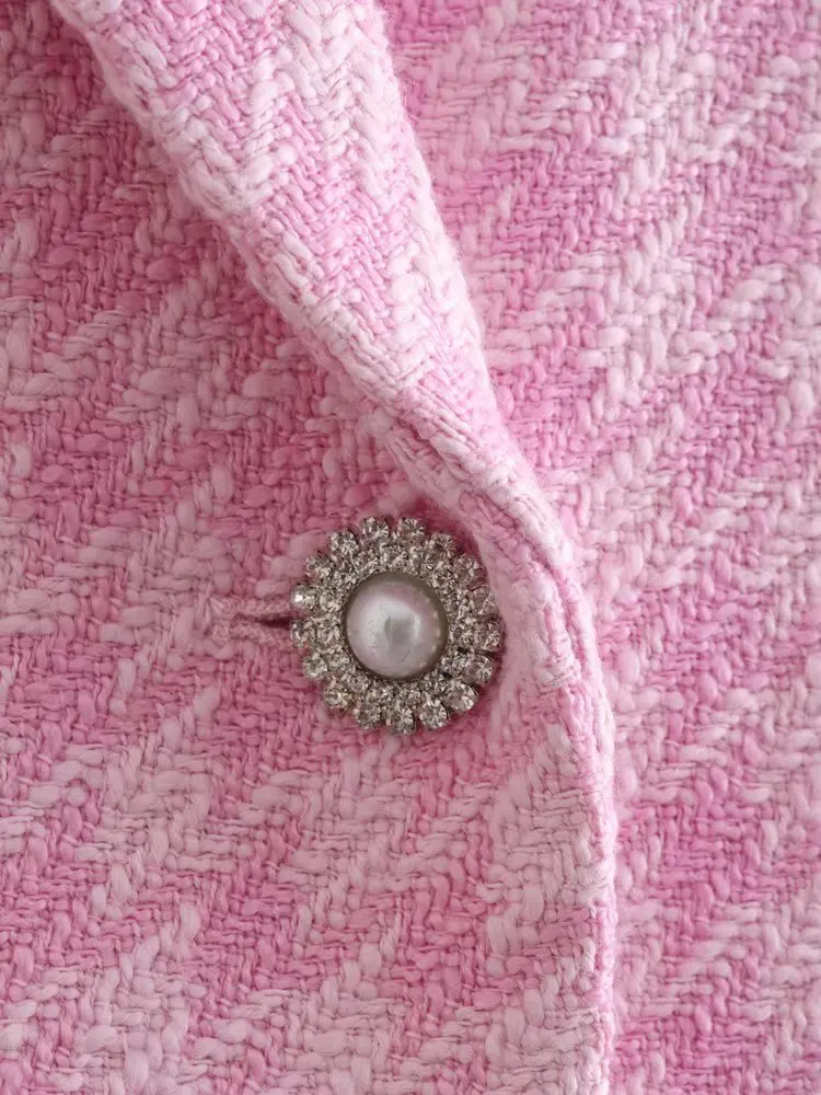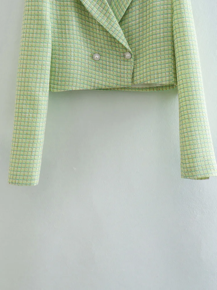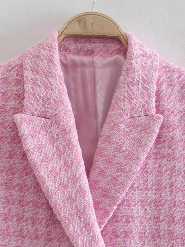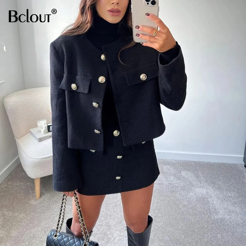 Bclout Female Outerwear+Shorts Skirts Suit Houndstooth Textures Leisure Blazer Coat Long Sleeve 2023 Women Spring Blazer