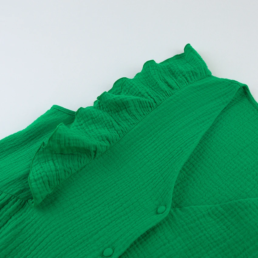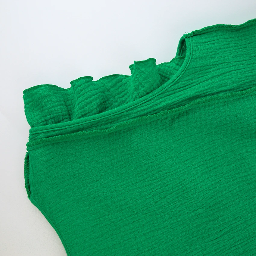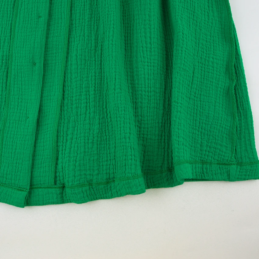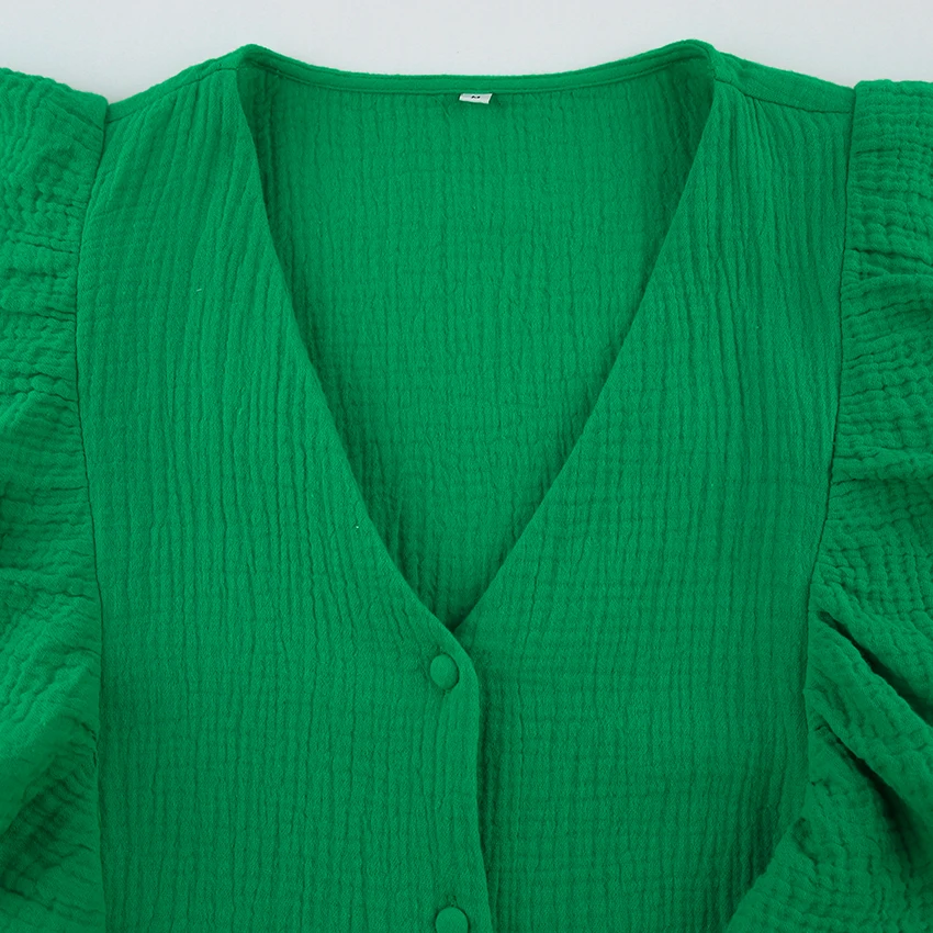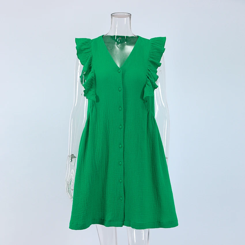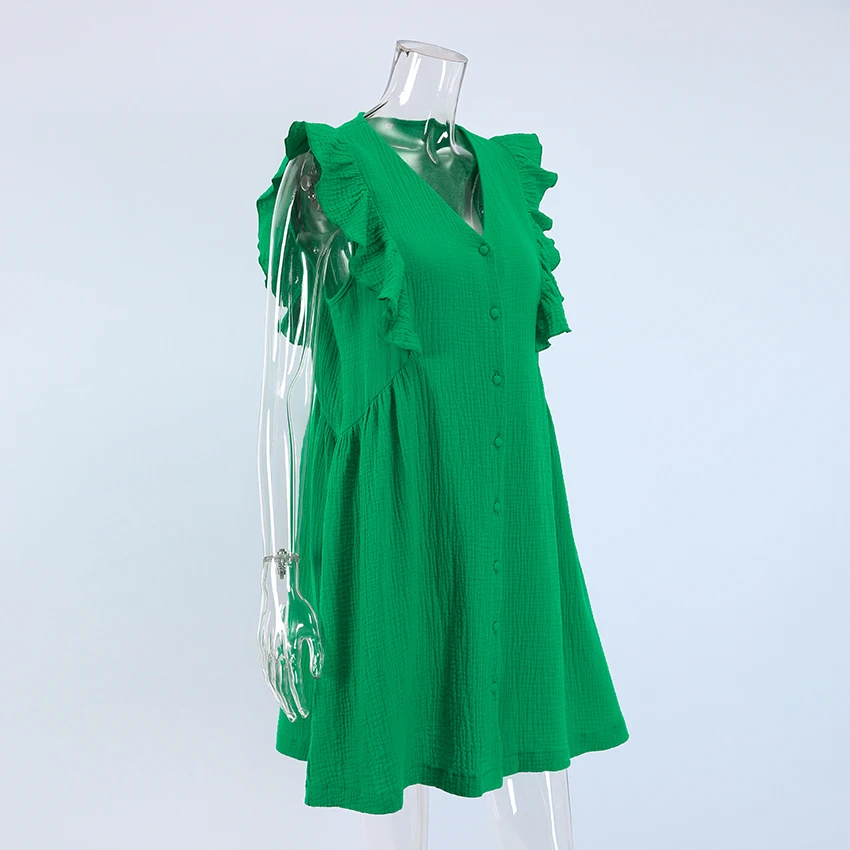 Bclout Green Single Breasted Mini Dress Cotton V-Neck Flying Sleeve Summer A-Line Elegant Dresses Casual Comfort Women Dress