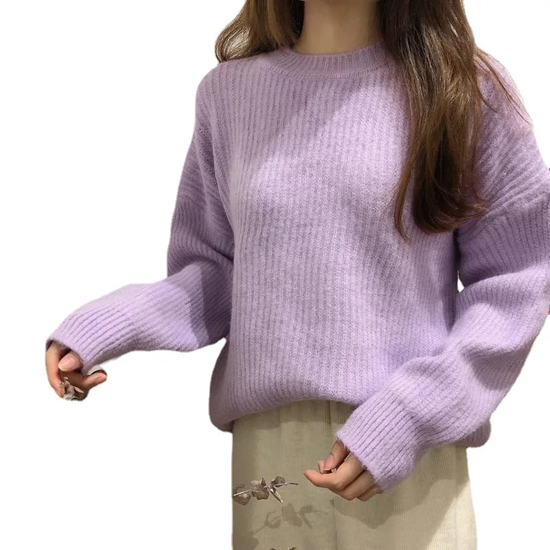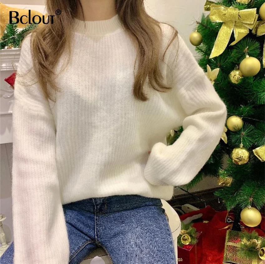 Bclout O-Neck Knitted Loose Harajuku Jumpers Fall Winter 2023 New Long Sleeve Tops Pull Sweaters for Women Vintage Pullovers