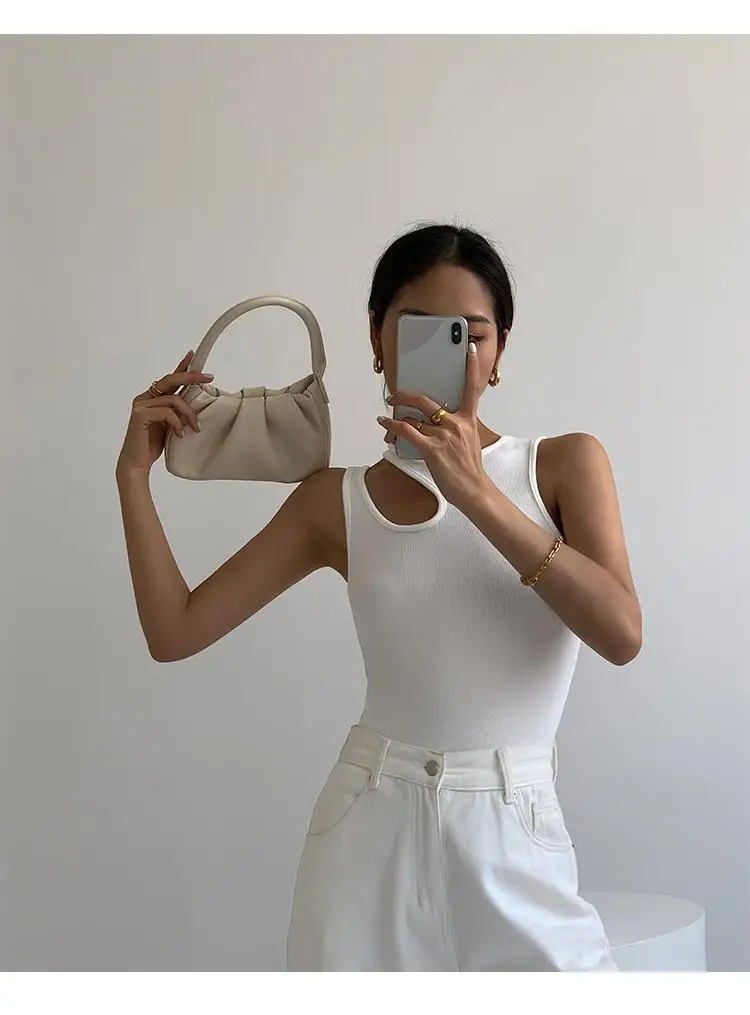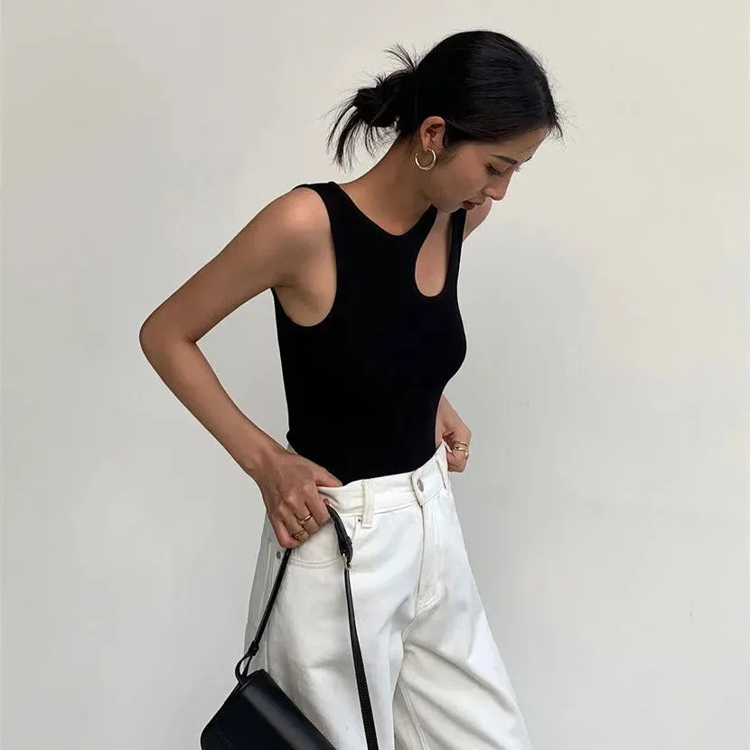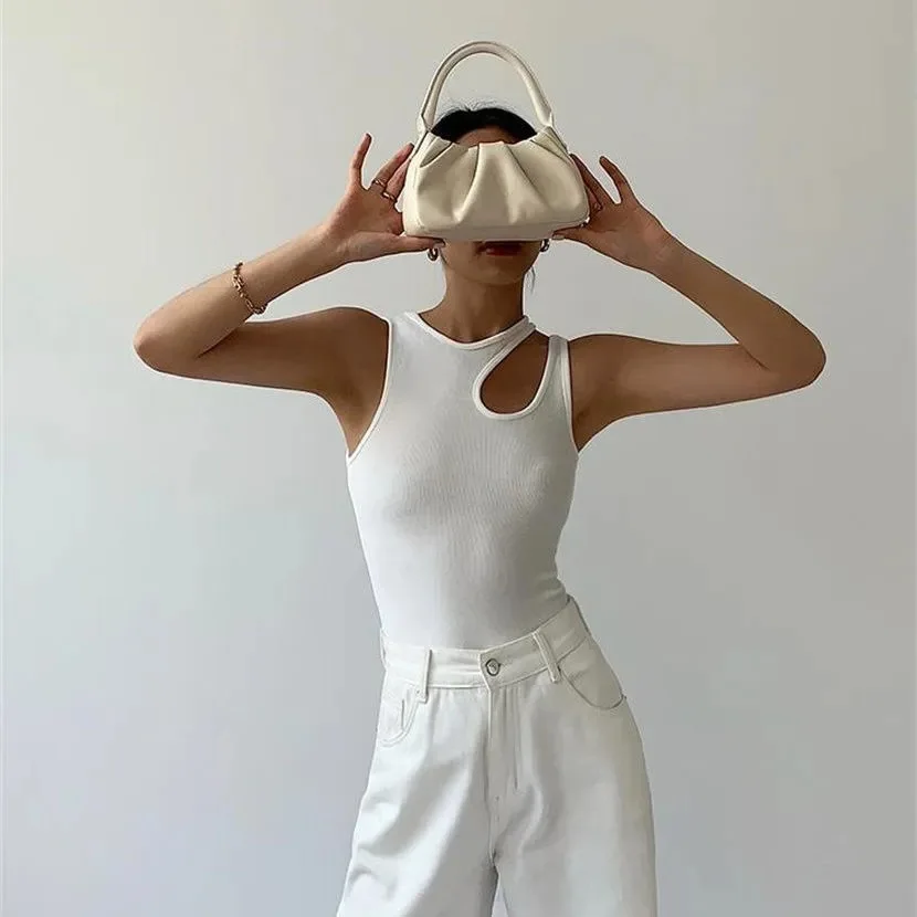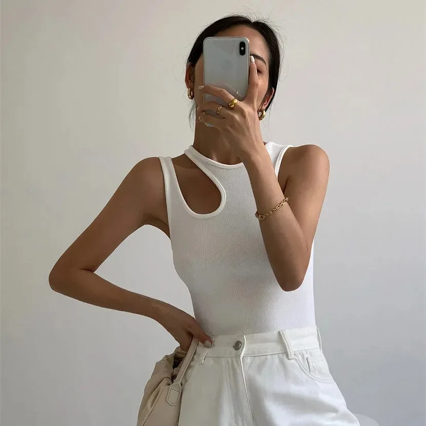 Bclout/QINSI 2022 Summer crop top women camisetas Sleeveless Slim T Shirts Casual y2k White Cut Out Women's T Shirt