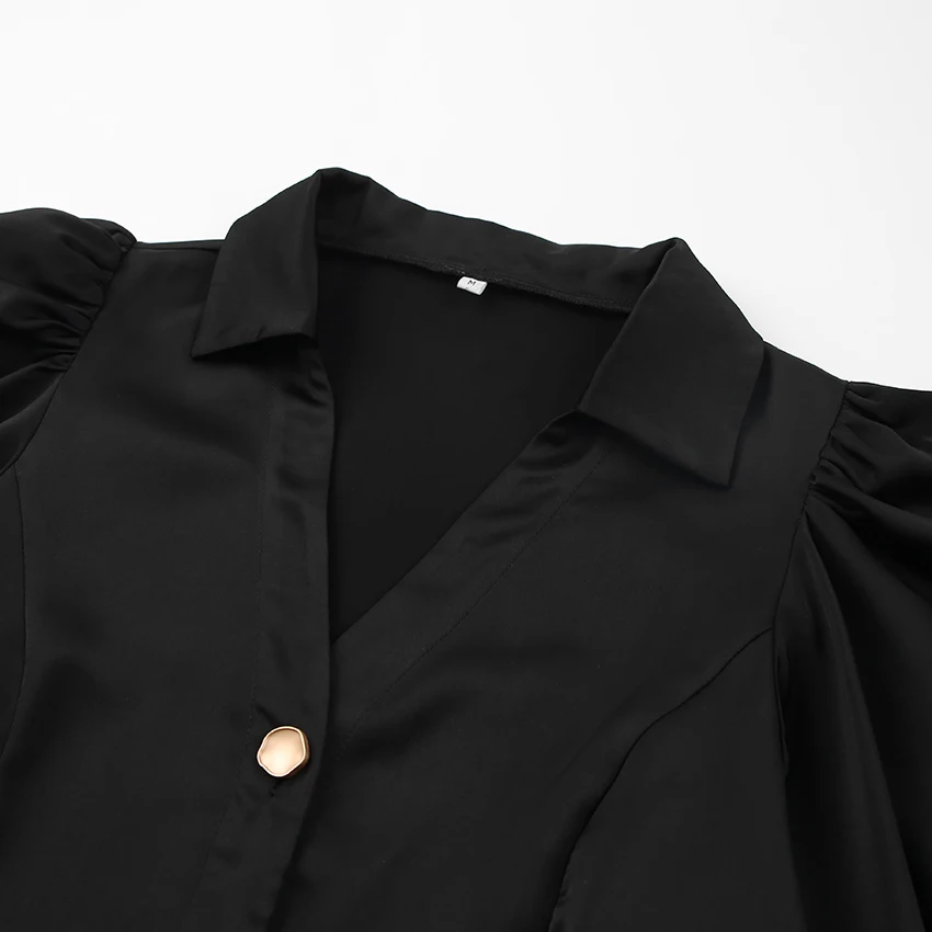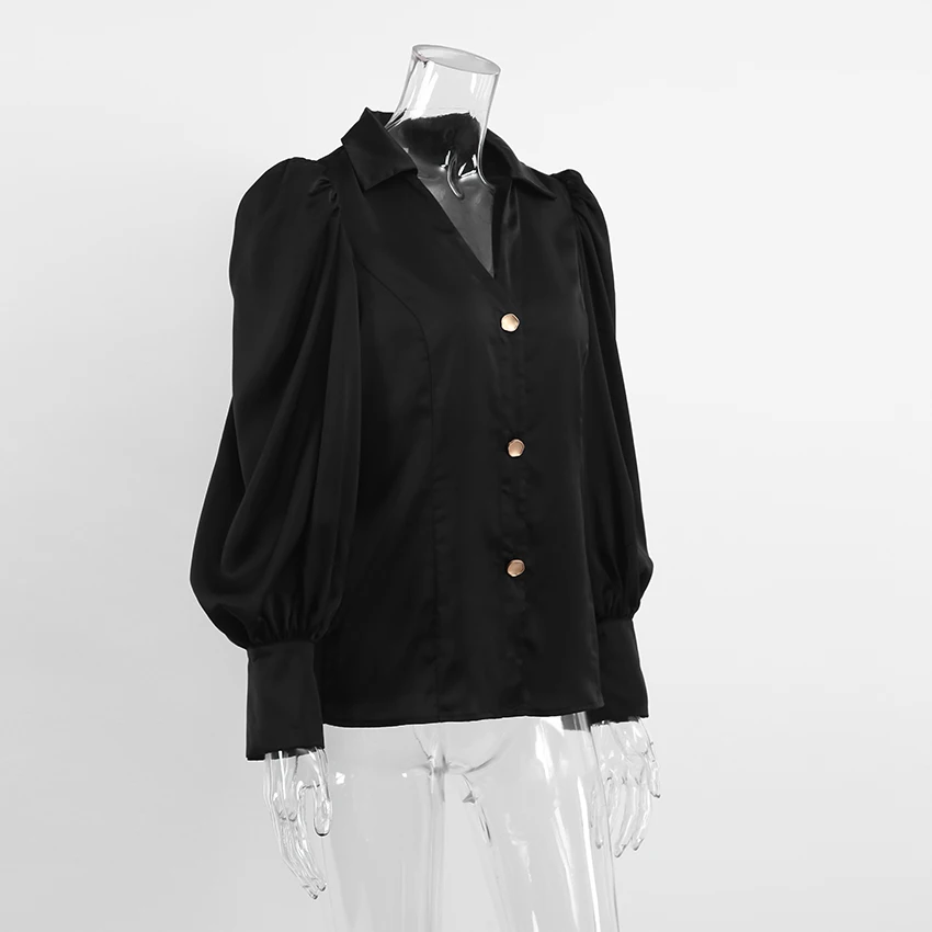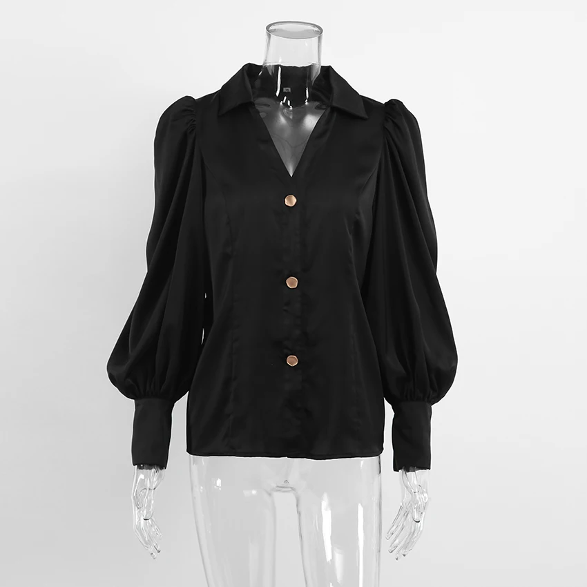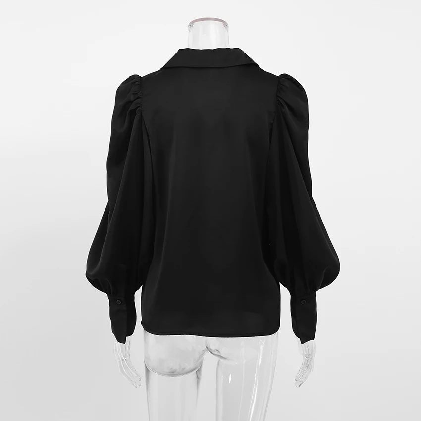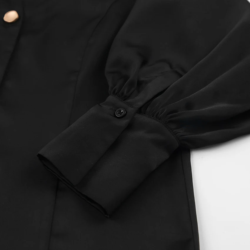 Bclout/QINSI Button Frill Tops Office Ladies Spring 2023 Chic Pleated Elegant Ladies Black Shirts Lantern Sleeves Women Blouses