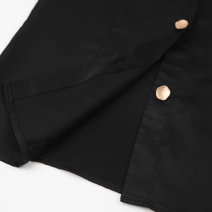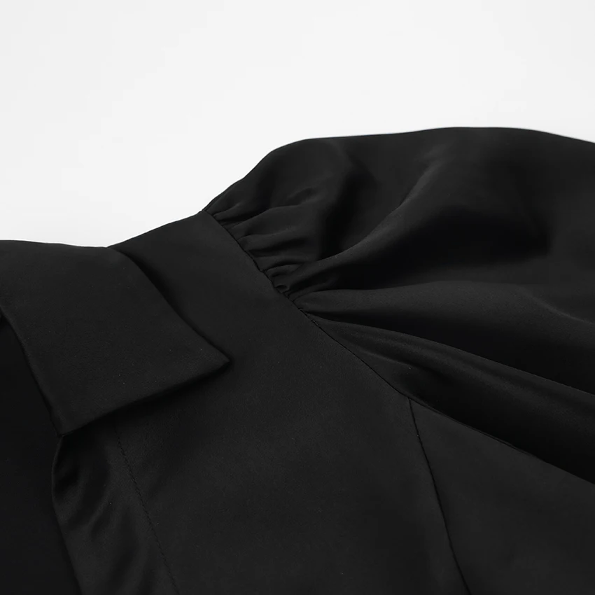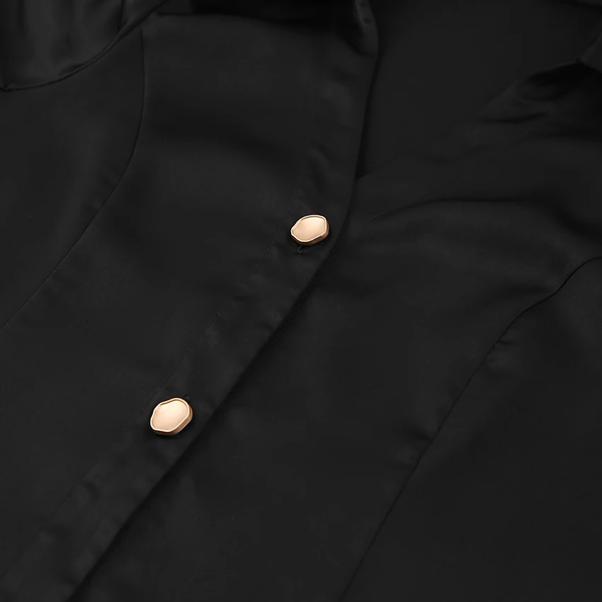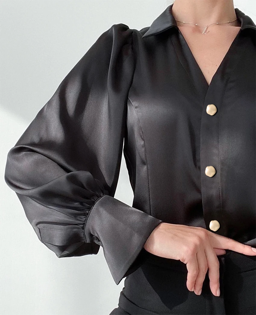 Bclout/QINSI Button Frill Tops Office Ladies Spring 2023 Chic Pleated Elegant Ladies Black Shirts Lantern Sleeves Women Blouses