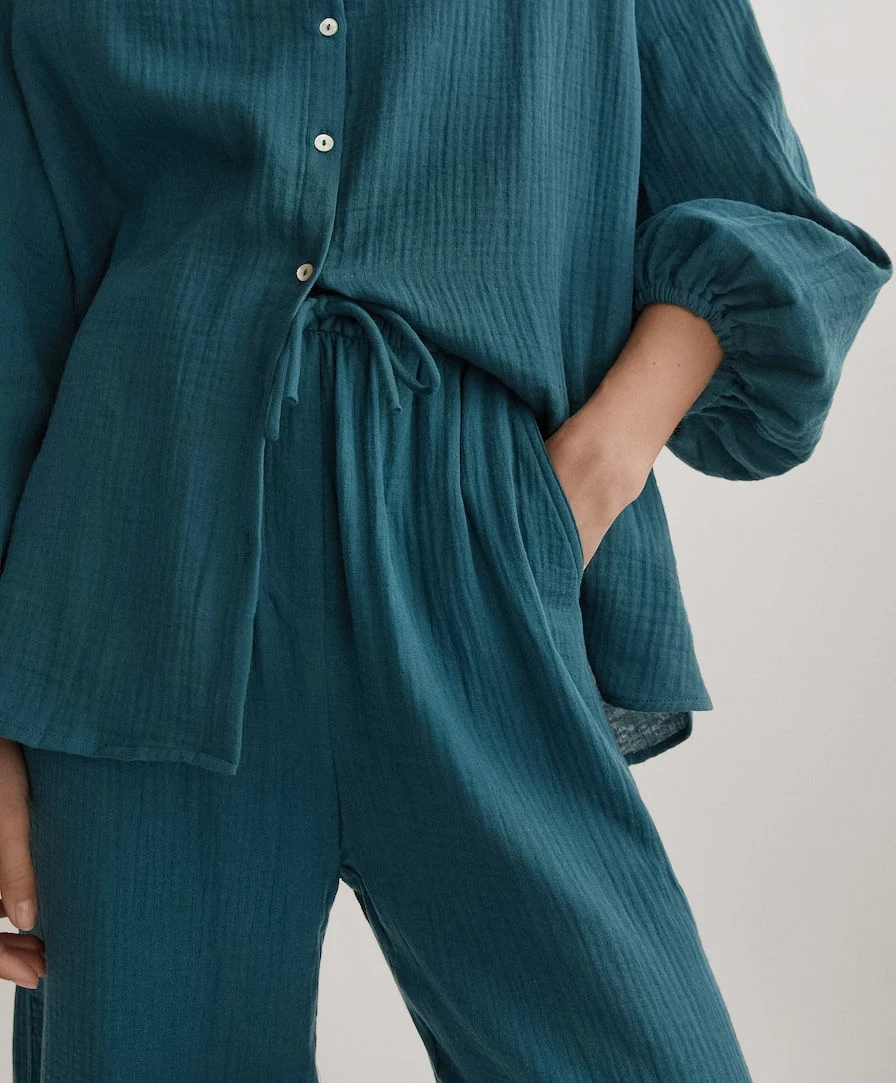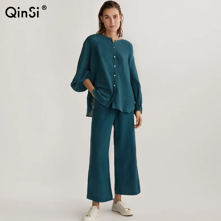 Bclout/QINSI Winter Casual Female Sleepwear Women's Home Clothes Pajamas Loose Trouser Suits Cotton Long Sleeve Piece Sets