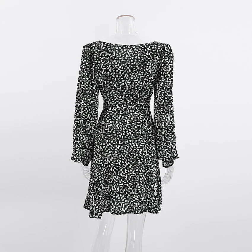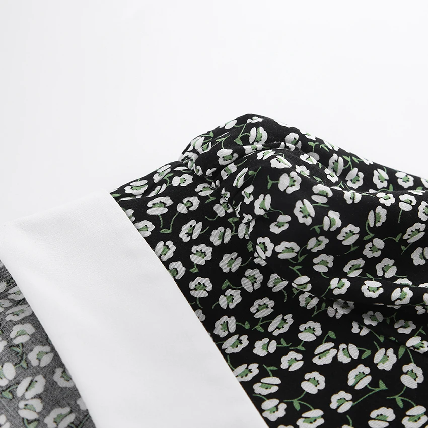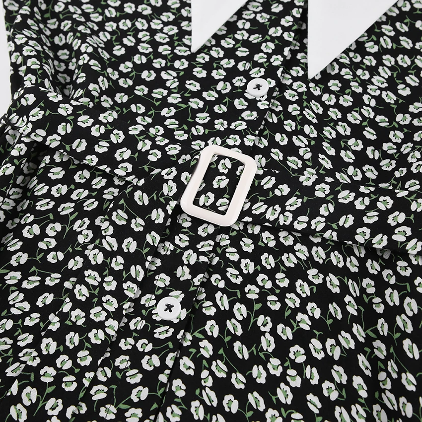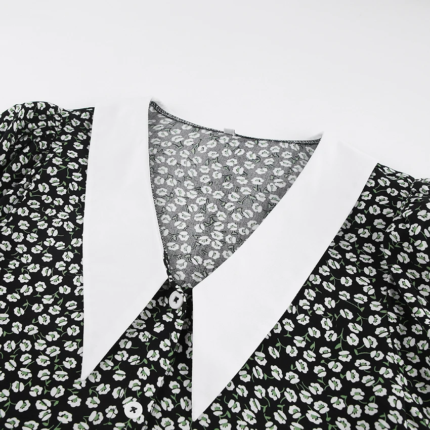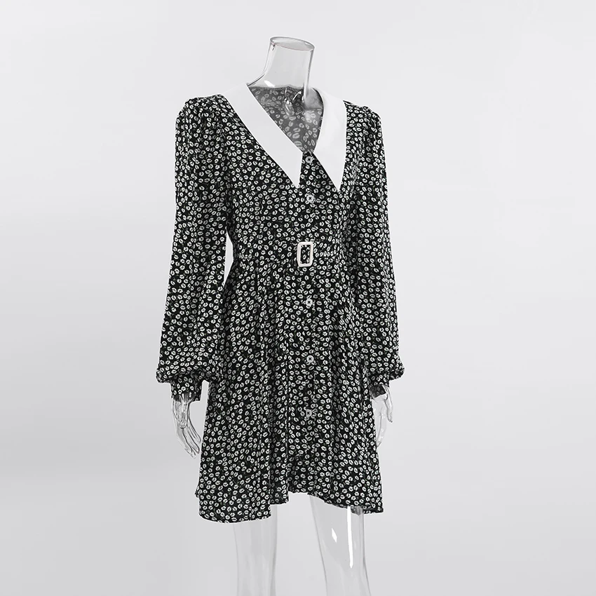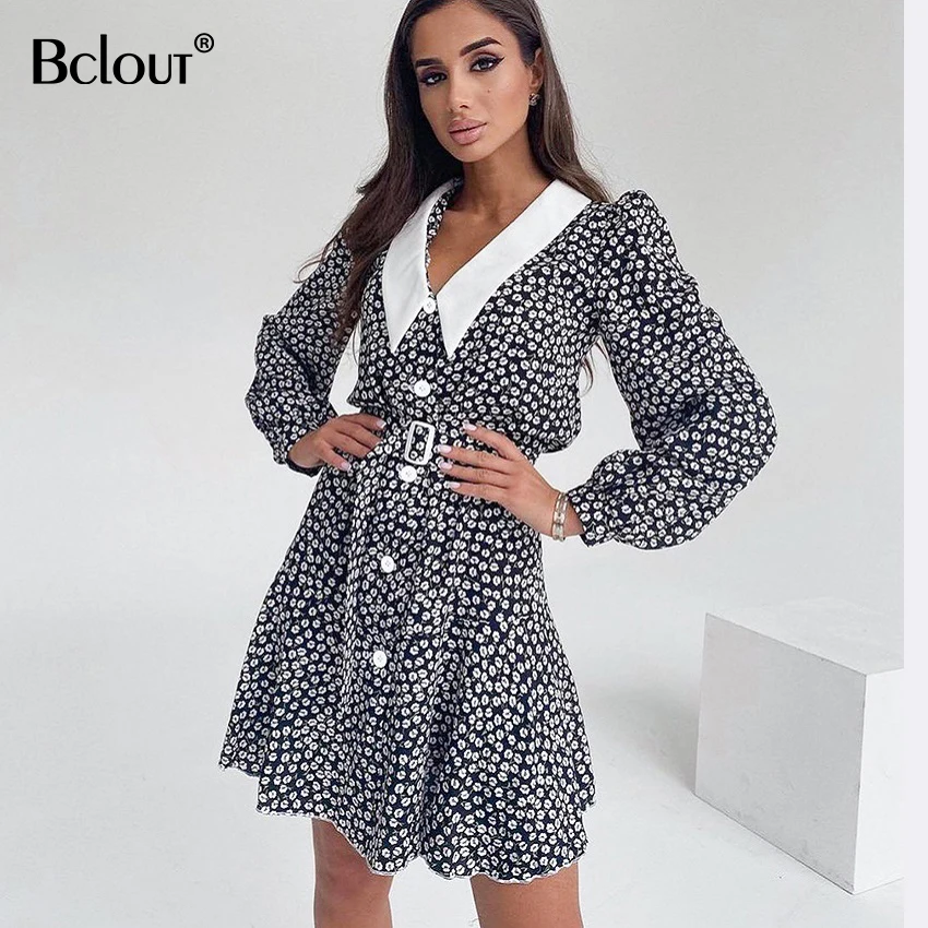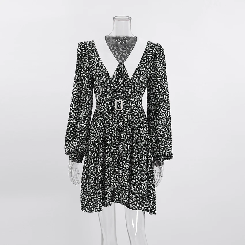 Bclout Sash Puff Sleeve A-Line Dress Patchwork Party 2023 Peter Pan Collar Ladies Vintage Floral Dress Elegant Women Dress