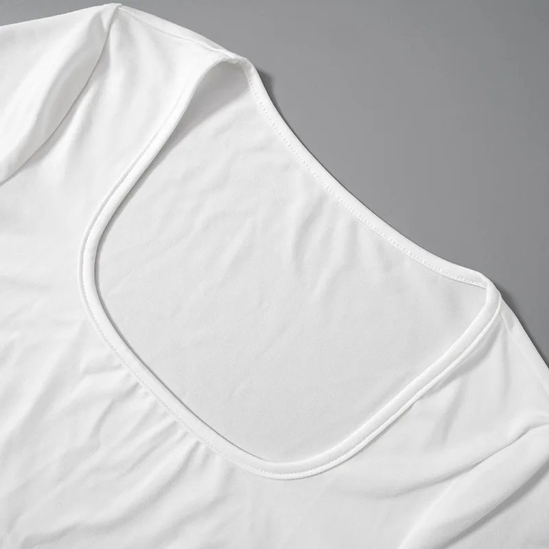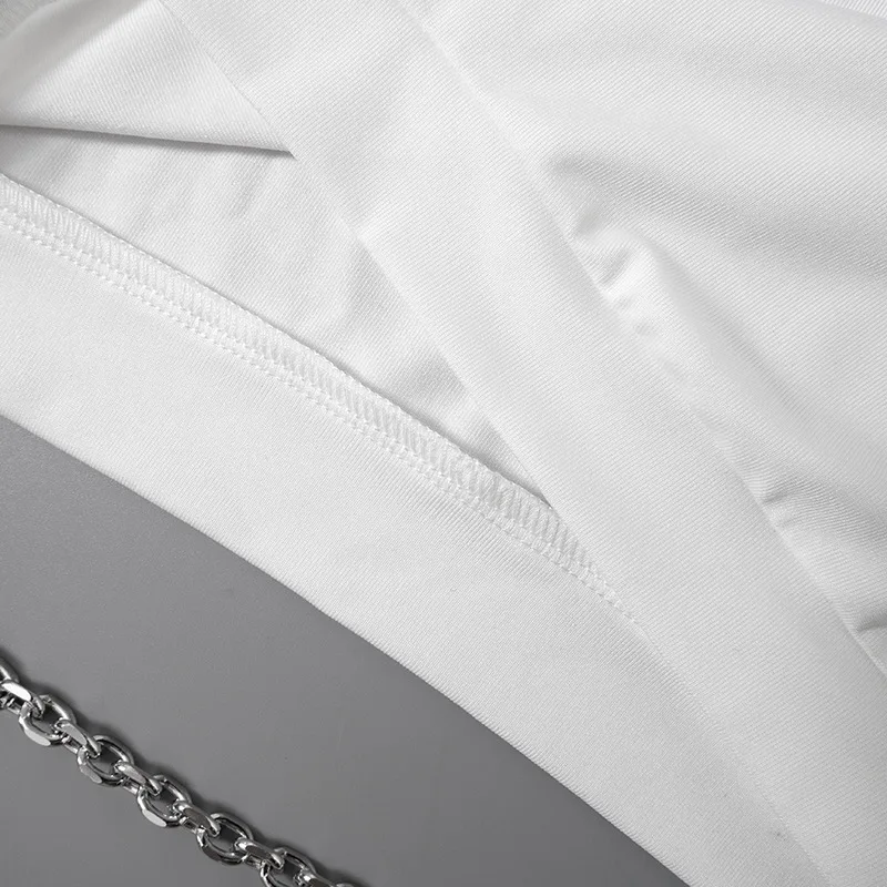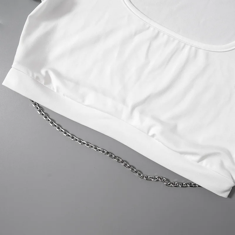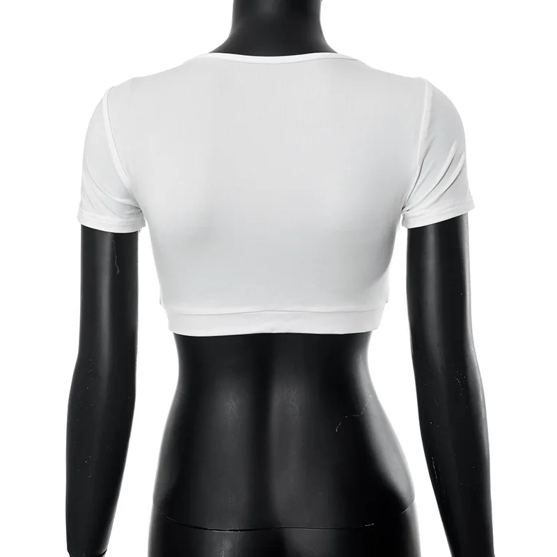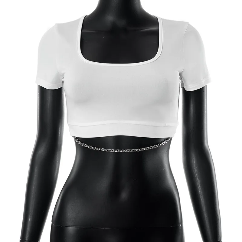 Bclout Skinny Chain Y2K Top Casual Basic Women Summer Short Sleeve Cropped Tops Square Color White T Shirt