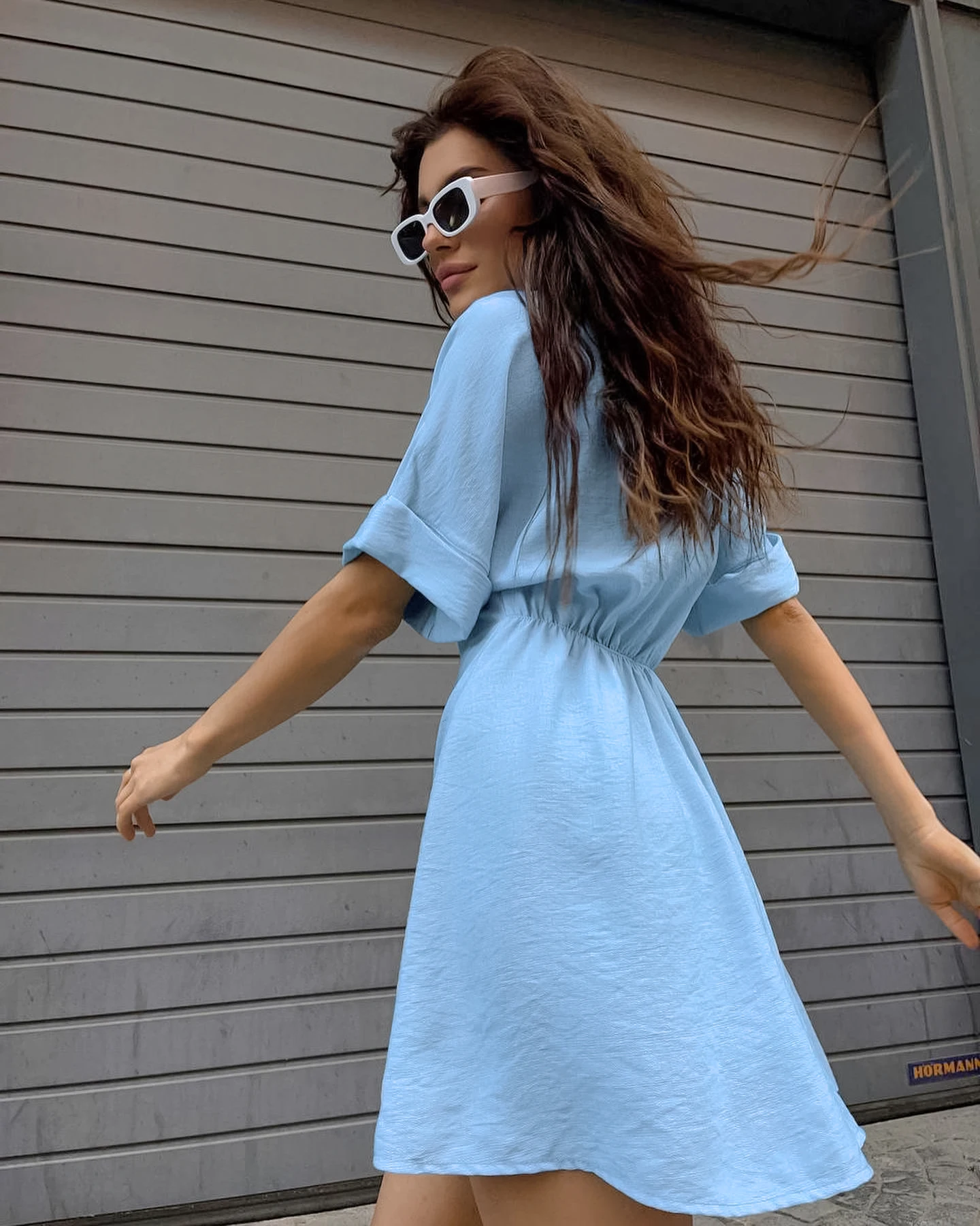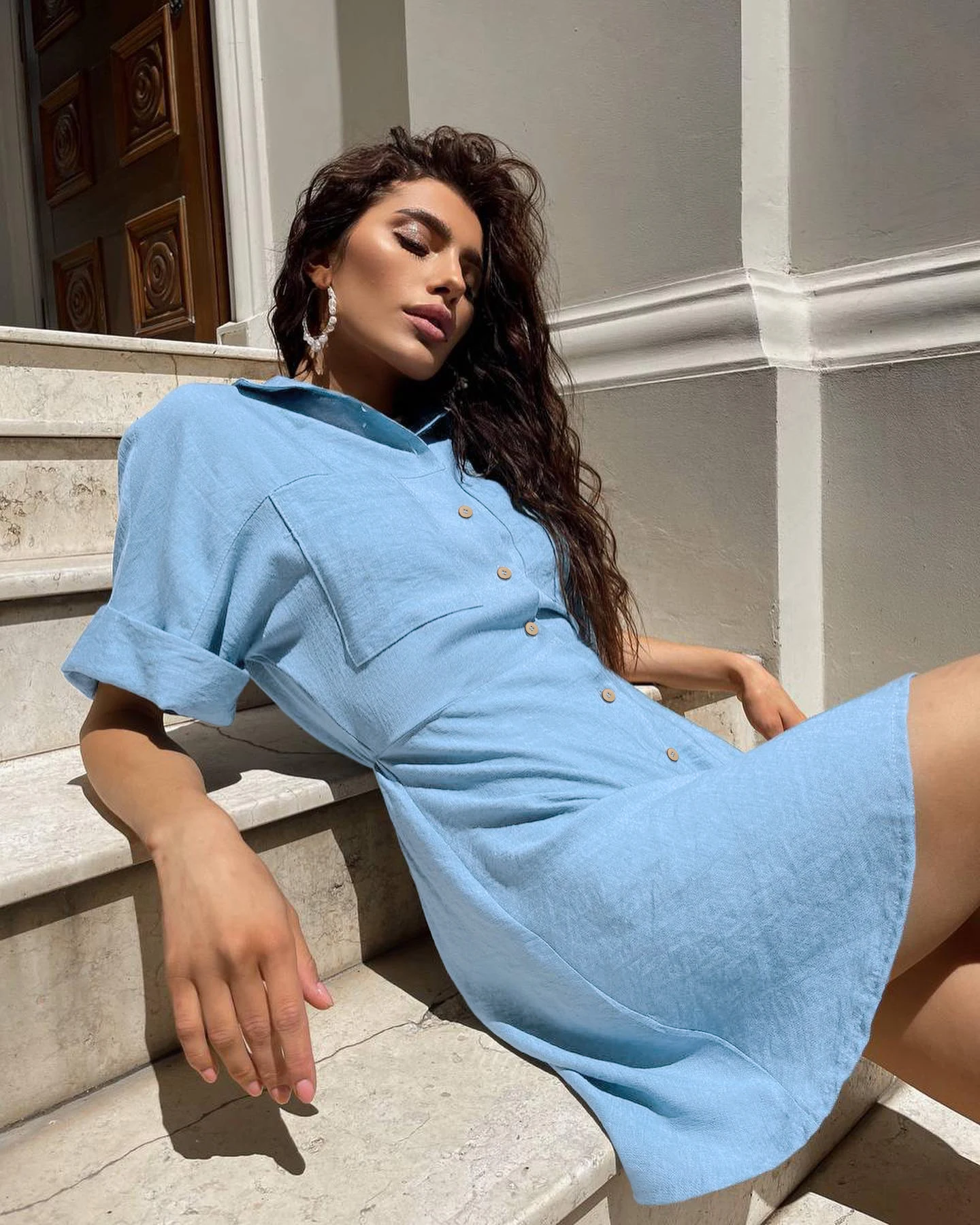 Bclout Summer Outfits Women 2023 A-line Mini Dress White Dress Ladies Casual Short Sleeve Single Breasted Shirt Dress
