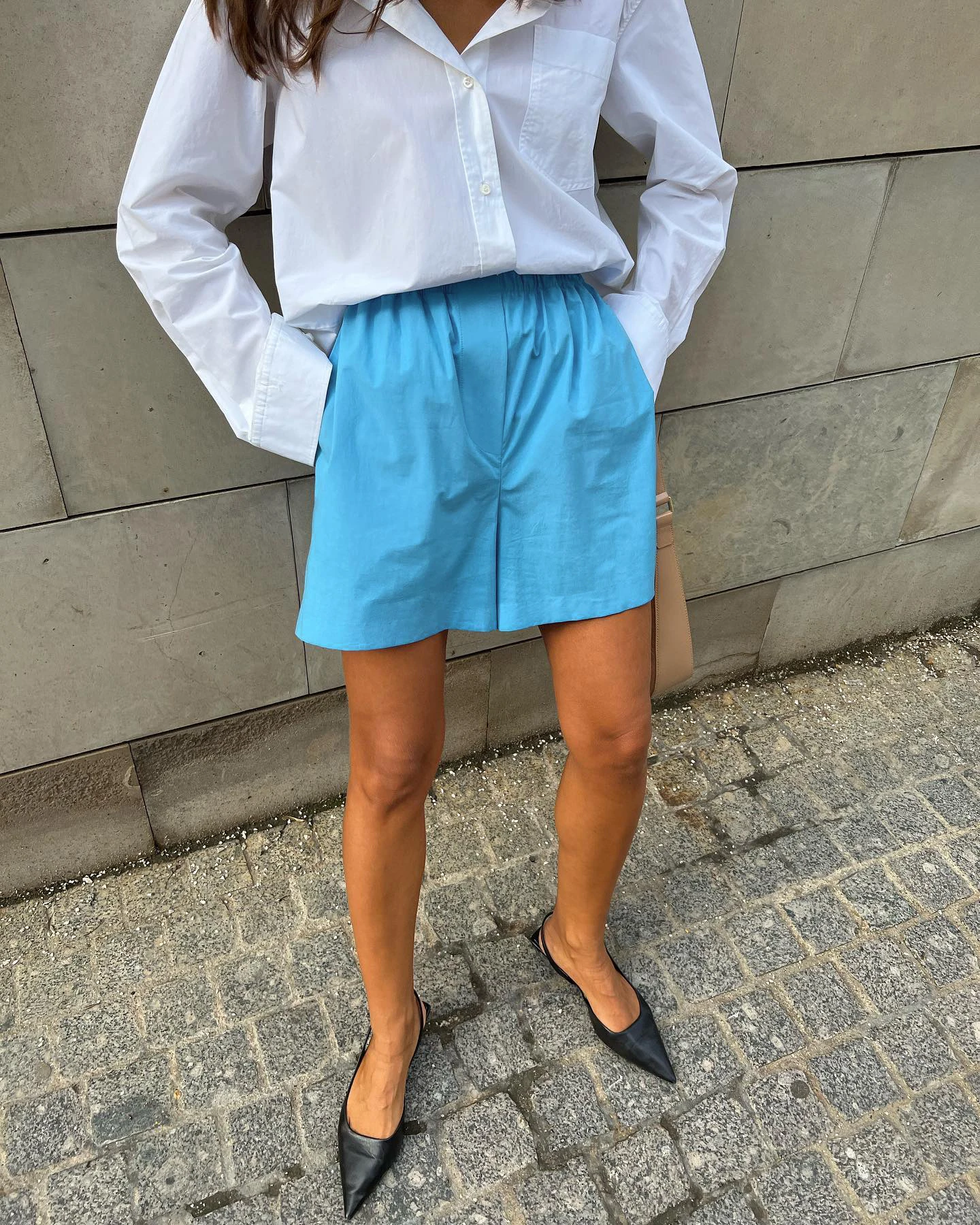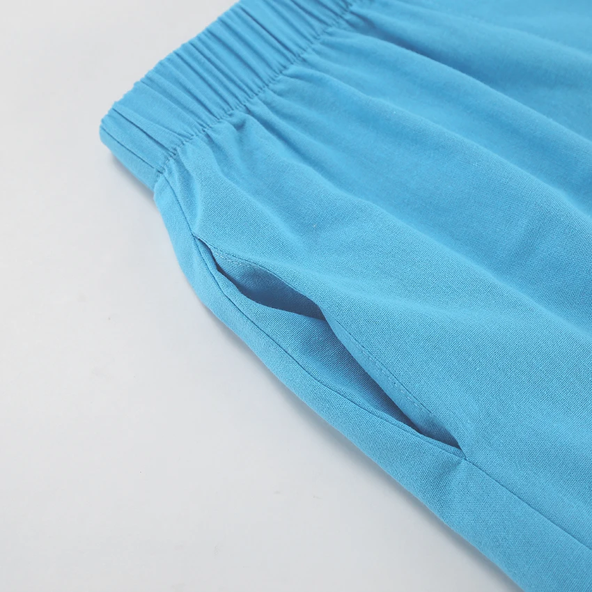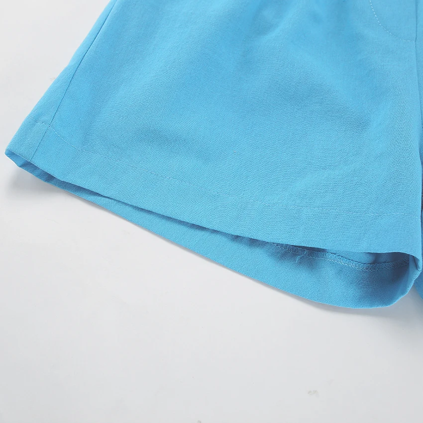 Bclout Summer Street Blue Elastic Waist Shorts Cotton Linen Office Pockets Shorts Women Cotton Chic Casual Short Pants 2023