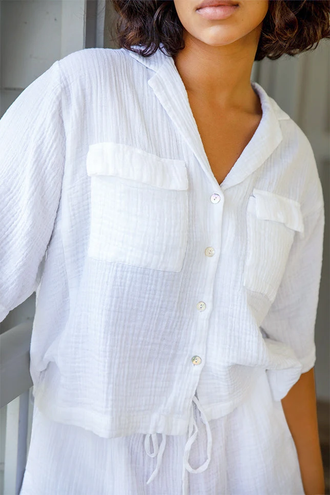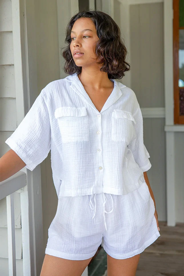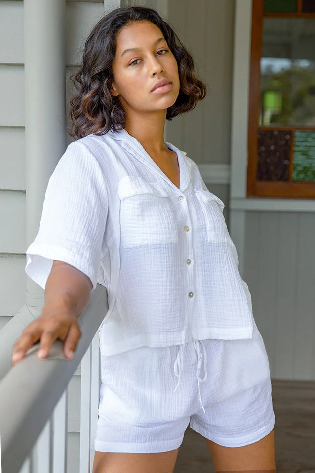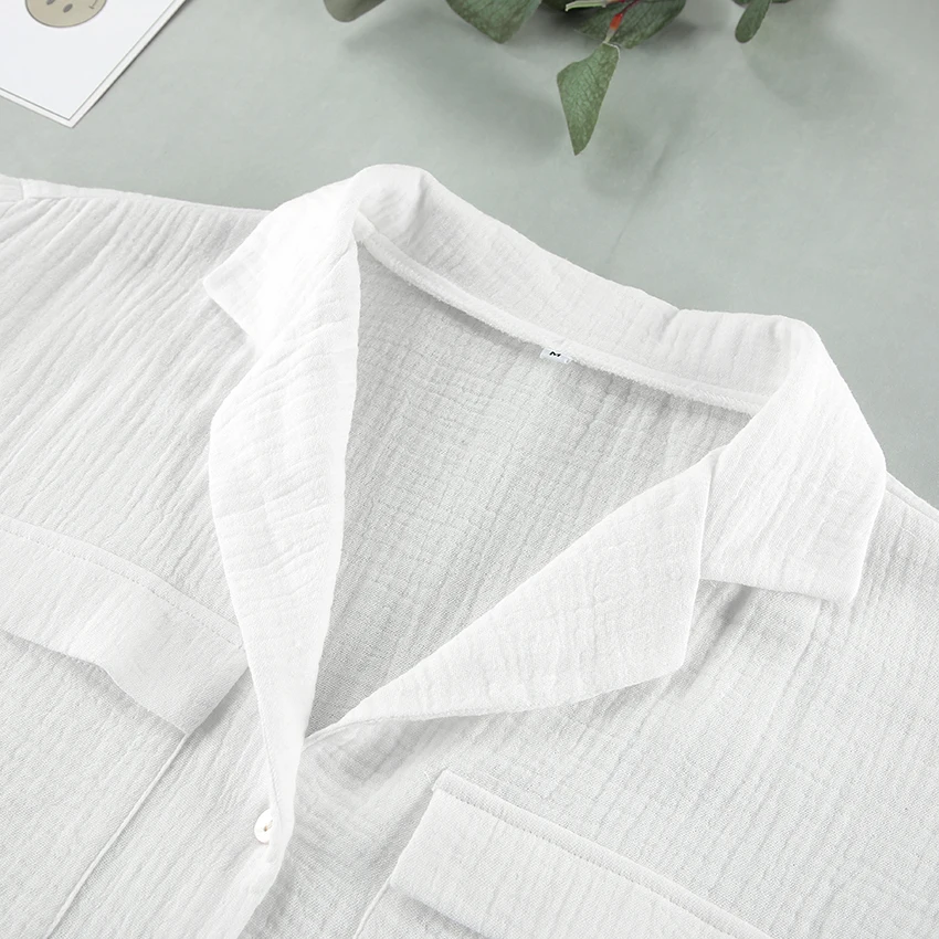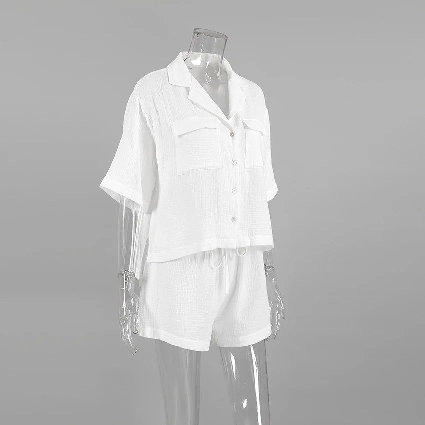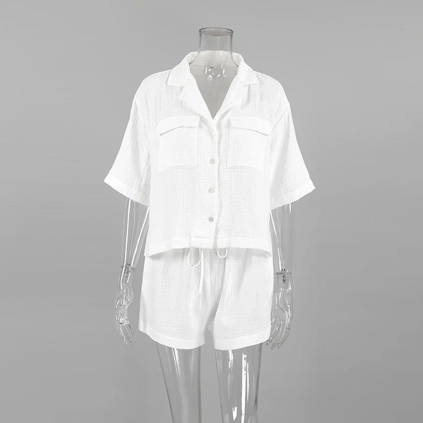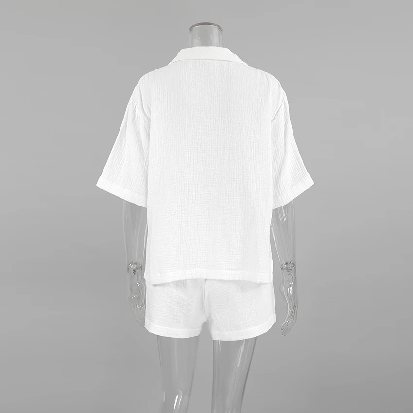 Bclout Turn-Down Collar Single Breasted Nightie Drawstring Shorts Nightwear Suits Female Cotton Short Sleeve Women Pyjamas