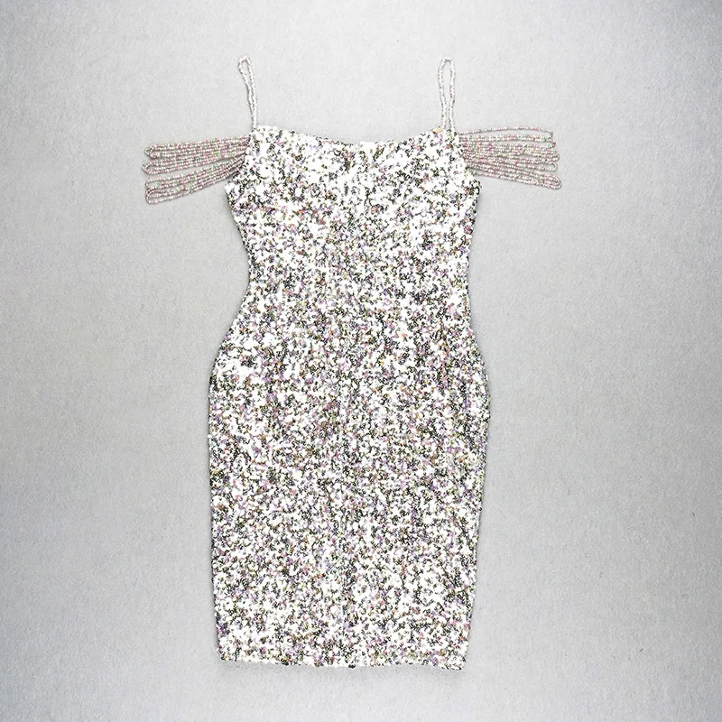 BD2072 Fashion New In Colorful Sequins V-neck Strap Long Dress For Women