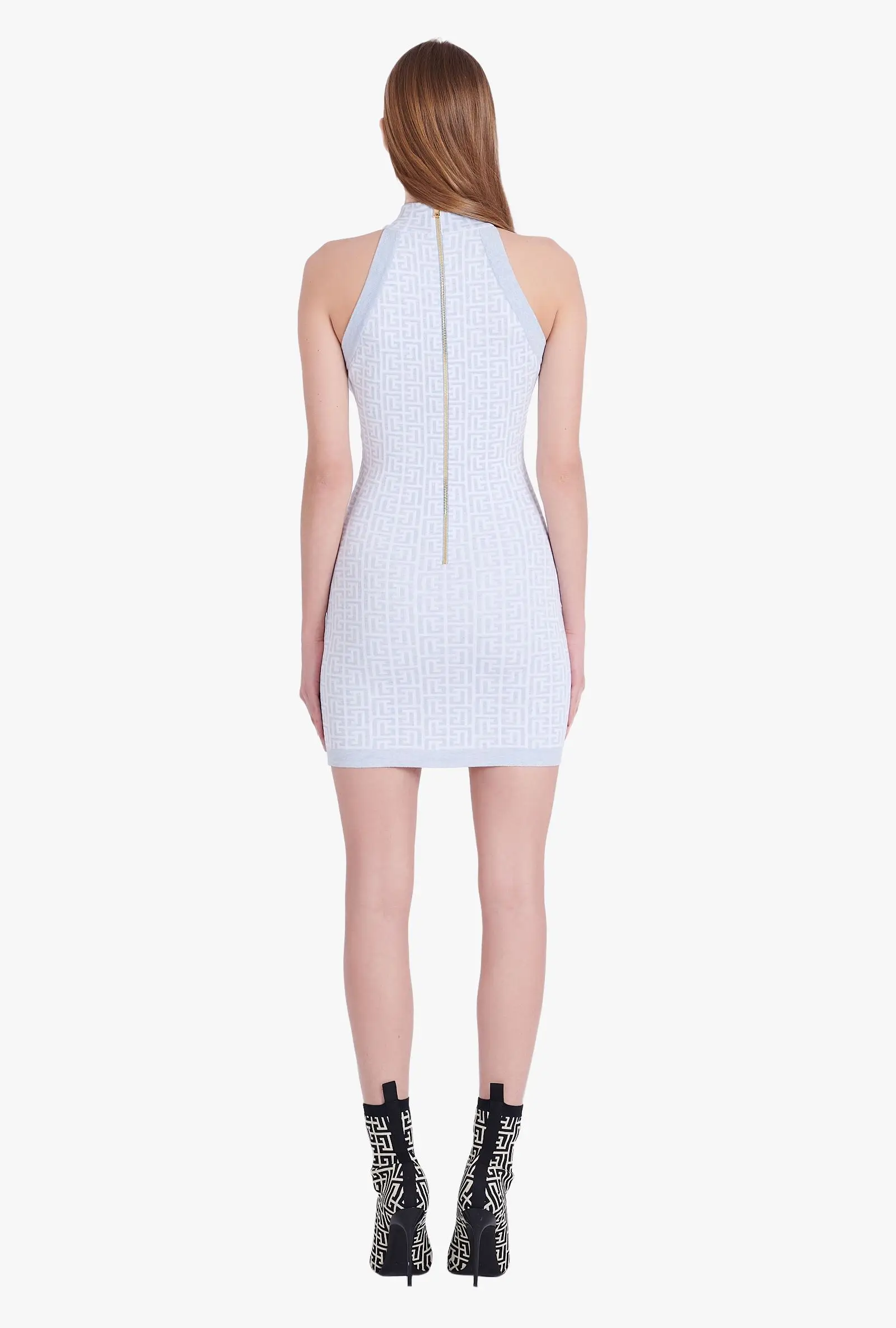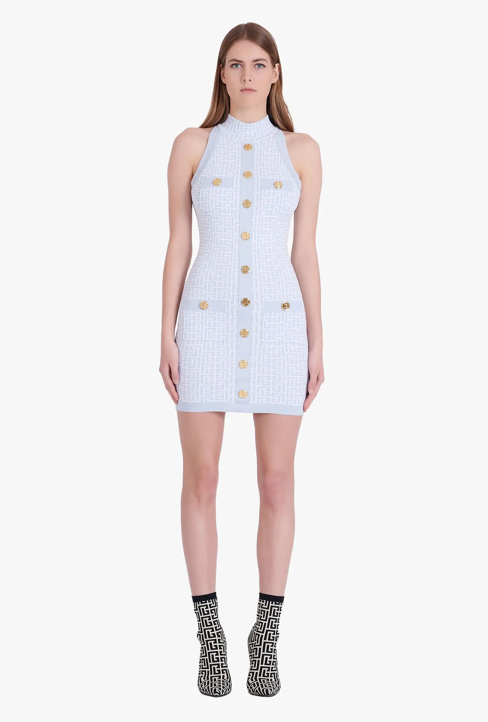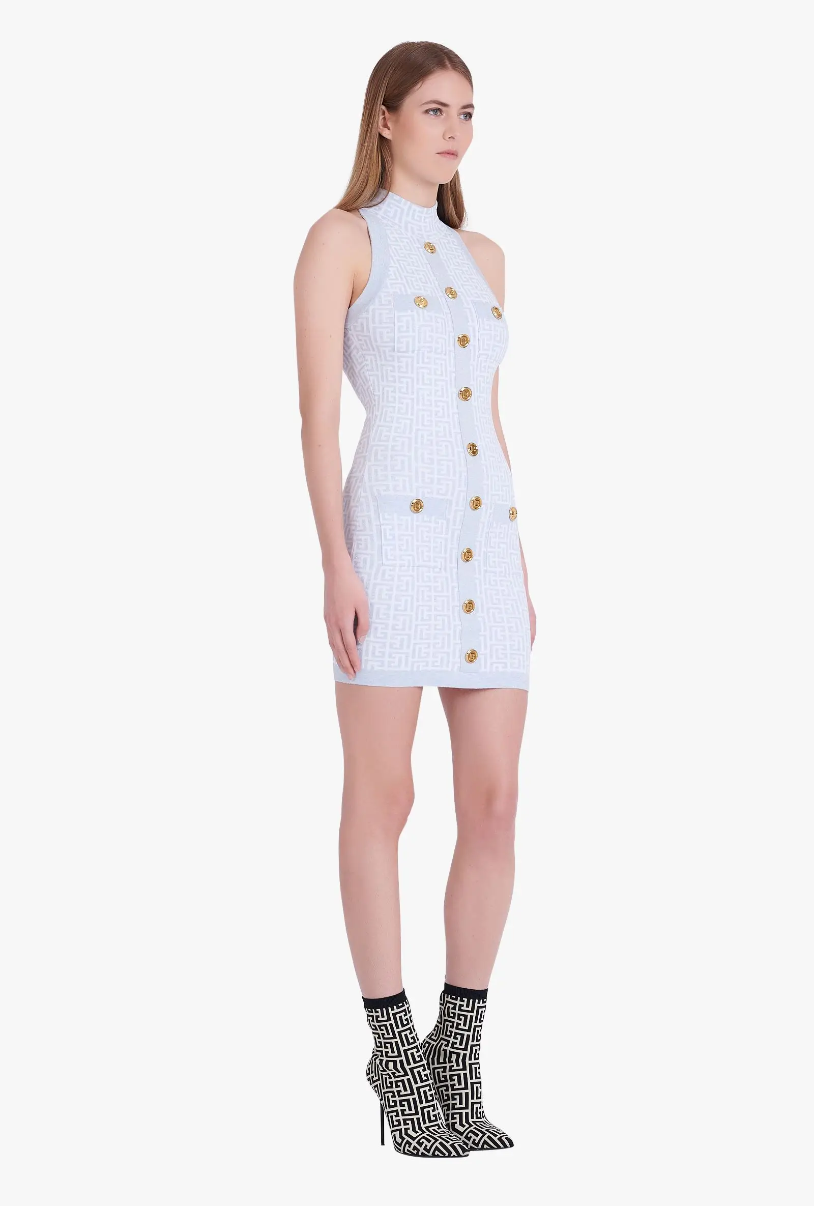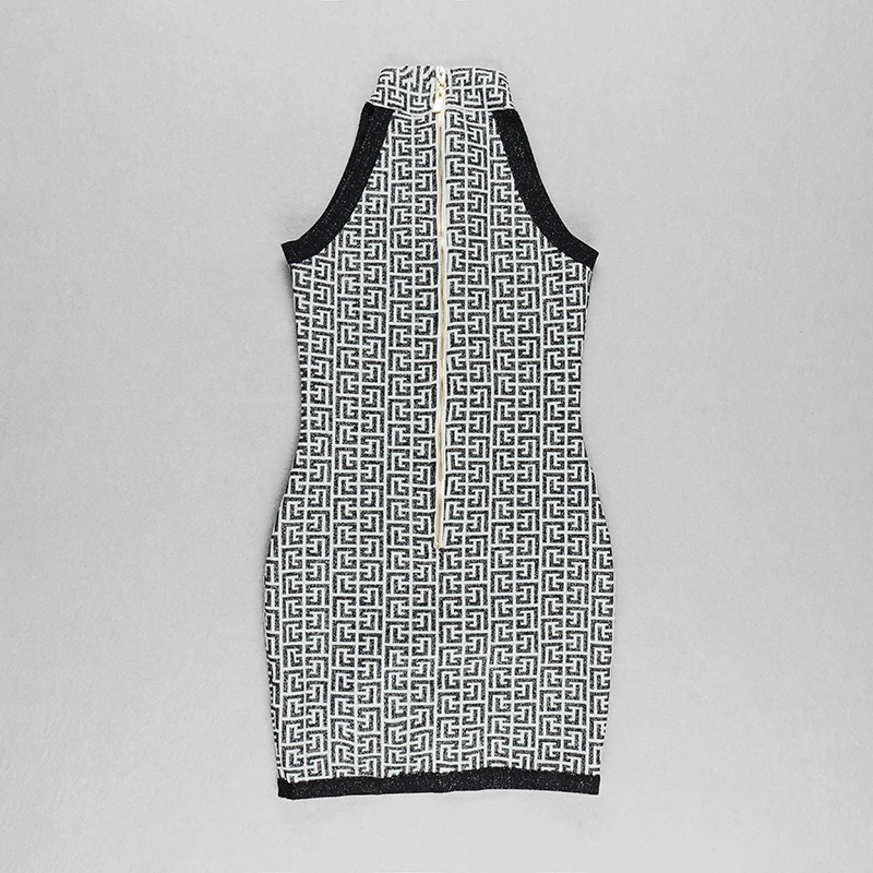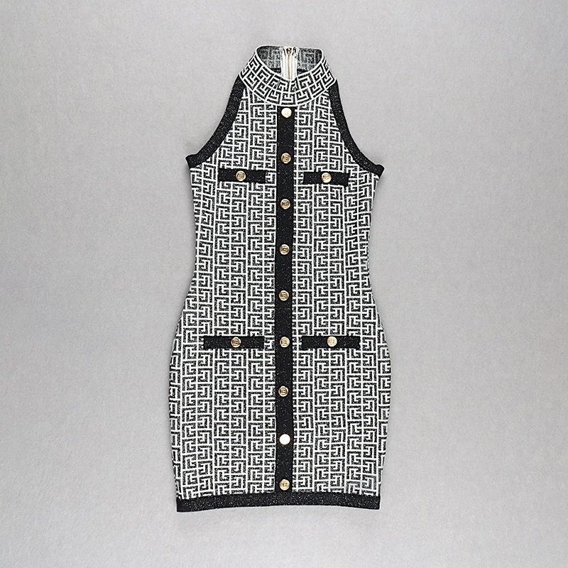 BD2199 Classic Print Metal Buttons Sleeveless Knitted Luxury Women'S Sweater Dress Dropshipping