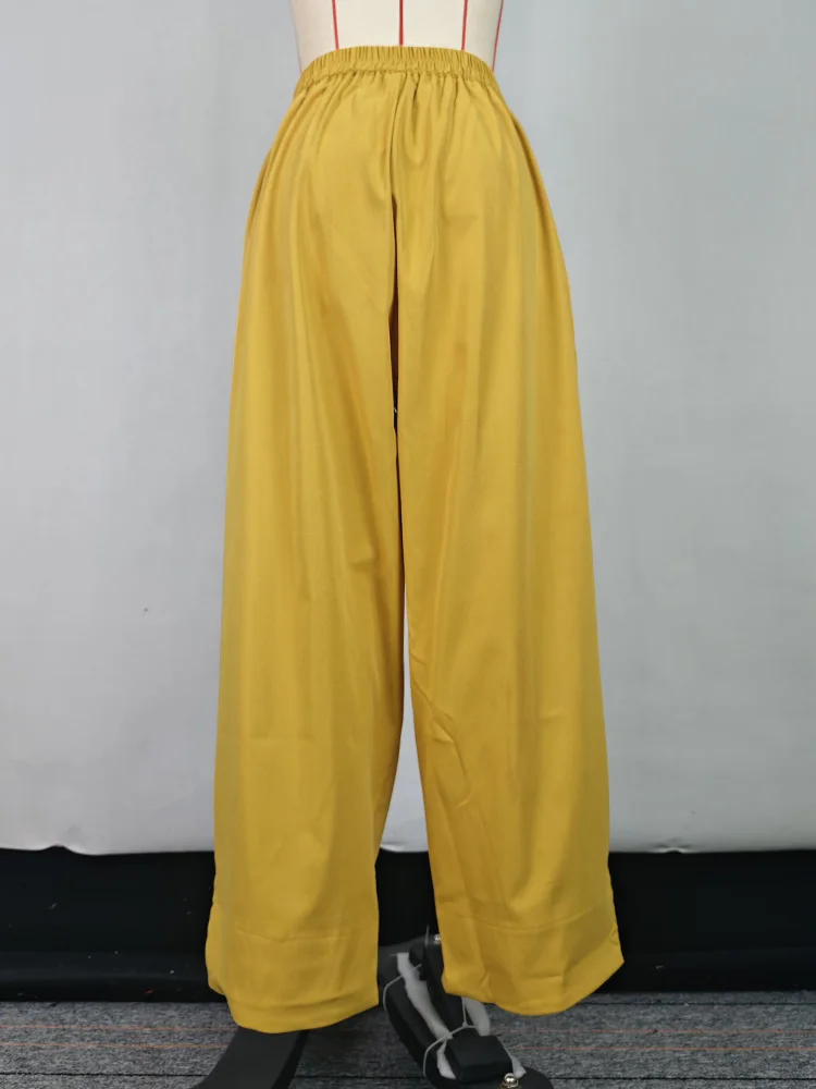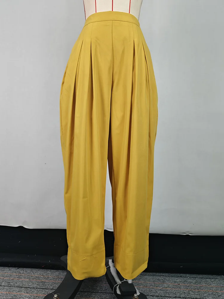 Beautyblue Elegant Women's Coats&Pants Yellow Pant Sets New Casual Buttoned Pleated Lapel Blazer Blouses Pockets Trousers Female