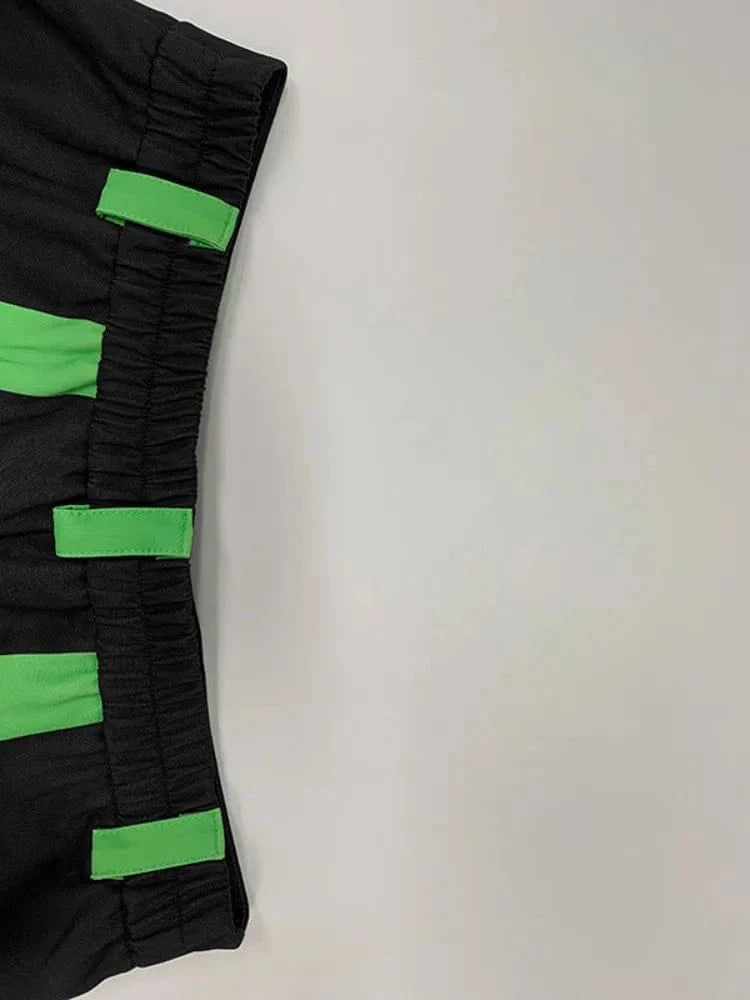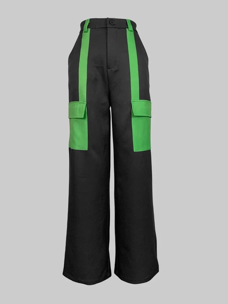 Beautyblue Fashion Woman Casual Pants Wide Leg Trousers 2025 Loose Contrast Color No Belt Pockets Black Green Bottoms Streetwear