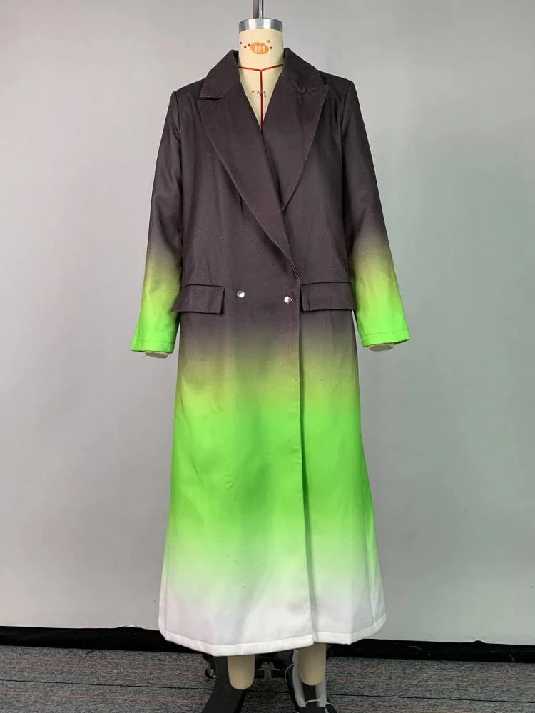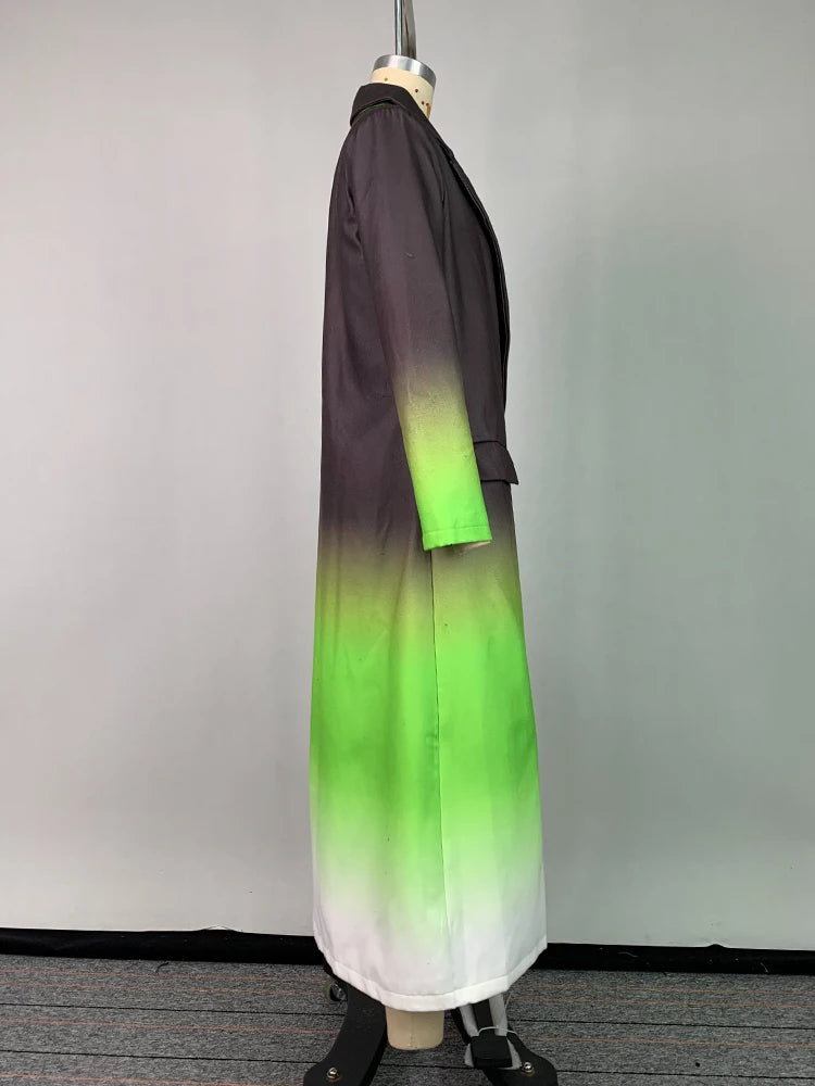 Beautyblue Women's Trench Coat Gradient Windbreaker Coat 2025 New Fashion Loose Split-Joint Notched Collar Long Outerwear Tops