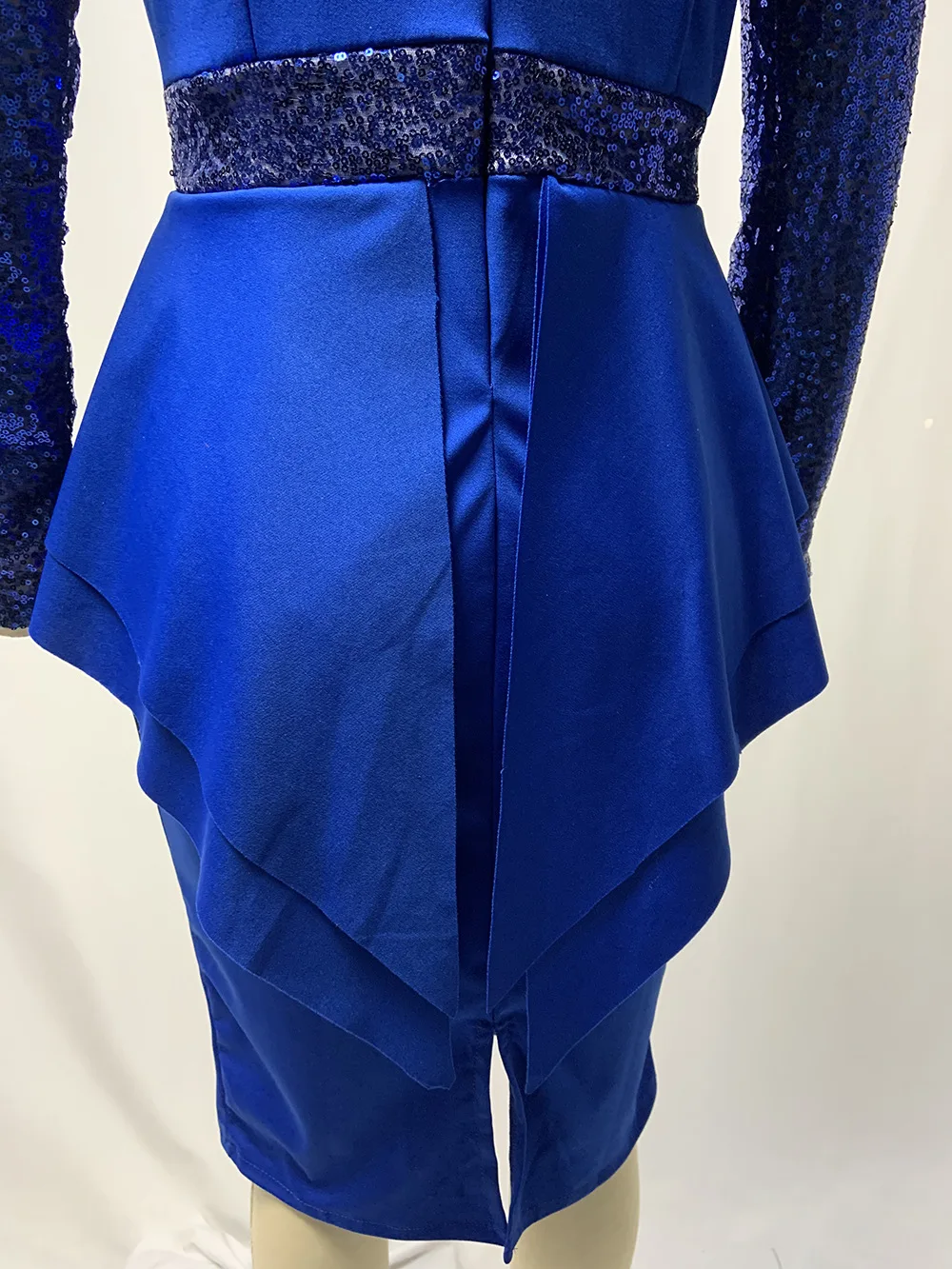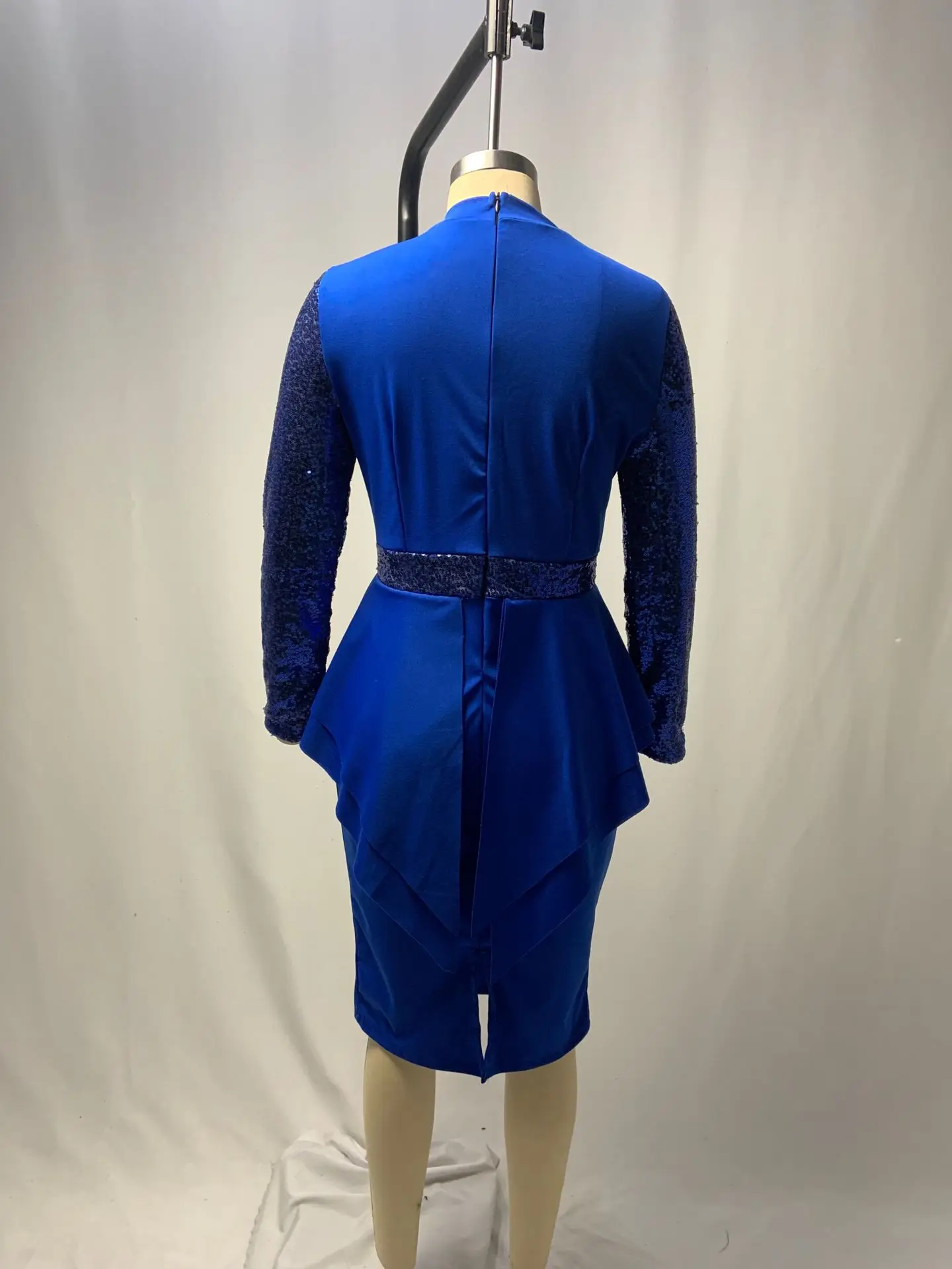 Best Selling Autumn High Waist Slim Glitter Ruffle Party Dress Mid-Length Professional Women's Dress