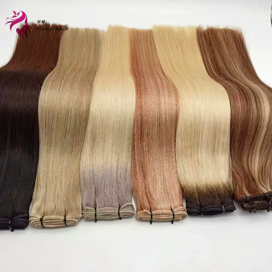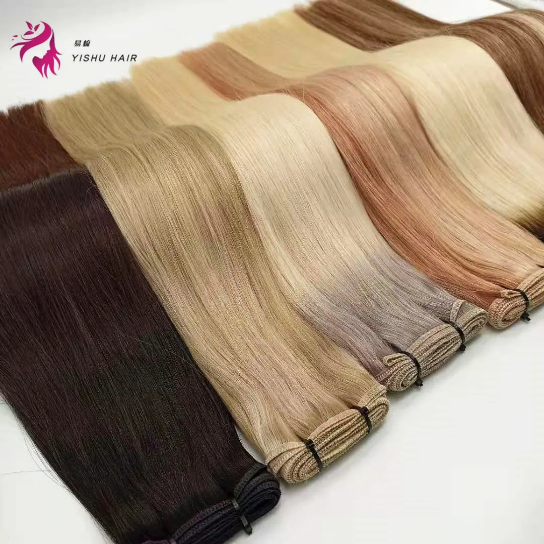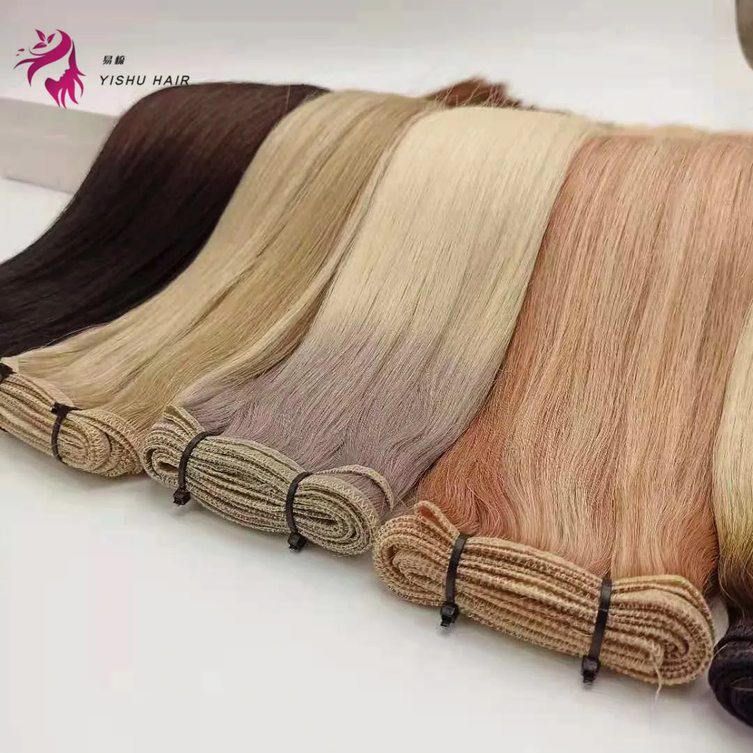 hand tied weft hair extension ,100% pure human hair ,pu hair weft