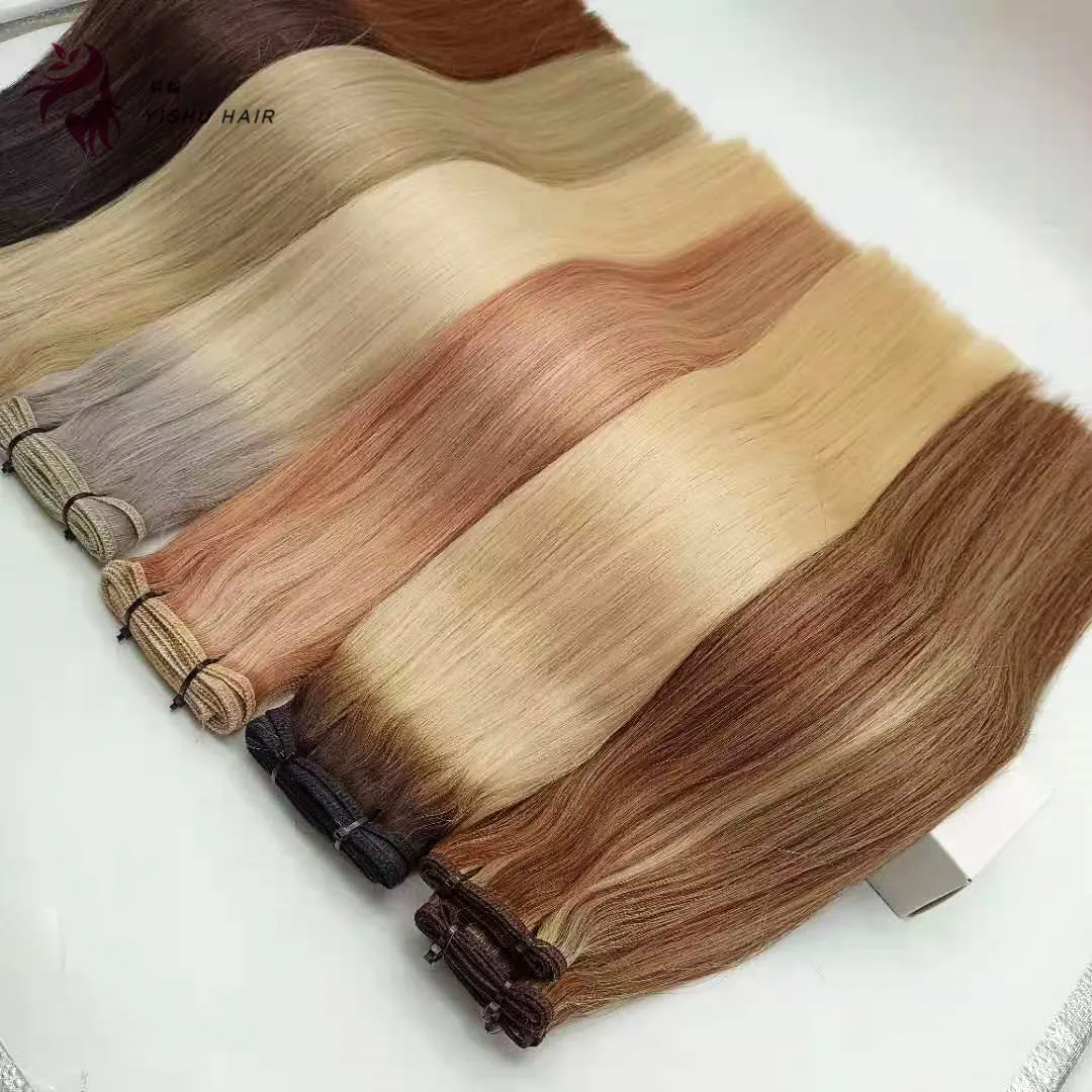 Best selling wholesale bone straight real cuticle aligned natural human hair hand tied weft extensions