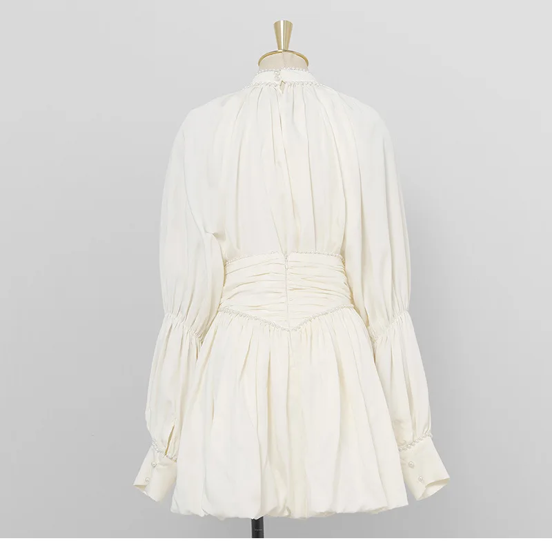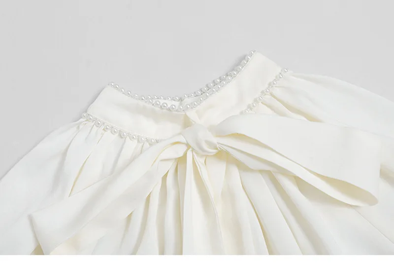Bettergirl 2023 Autumn New Temperament Lantern Sleeve Bow Girl Apricot Color Shirt Fold Waist Skirt Suit