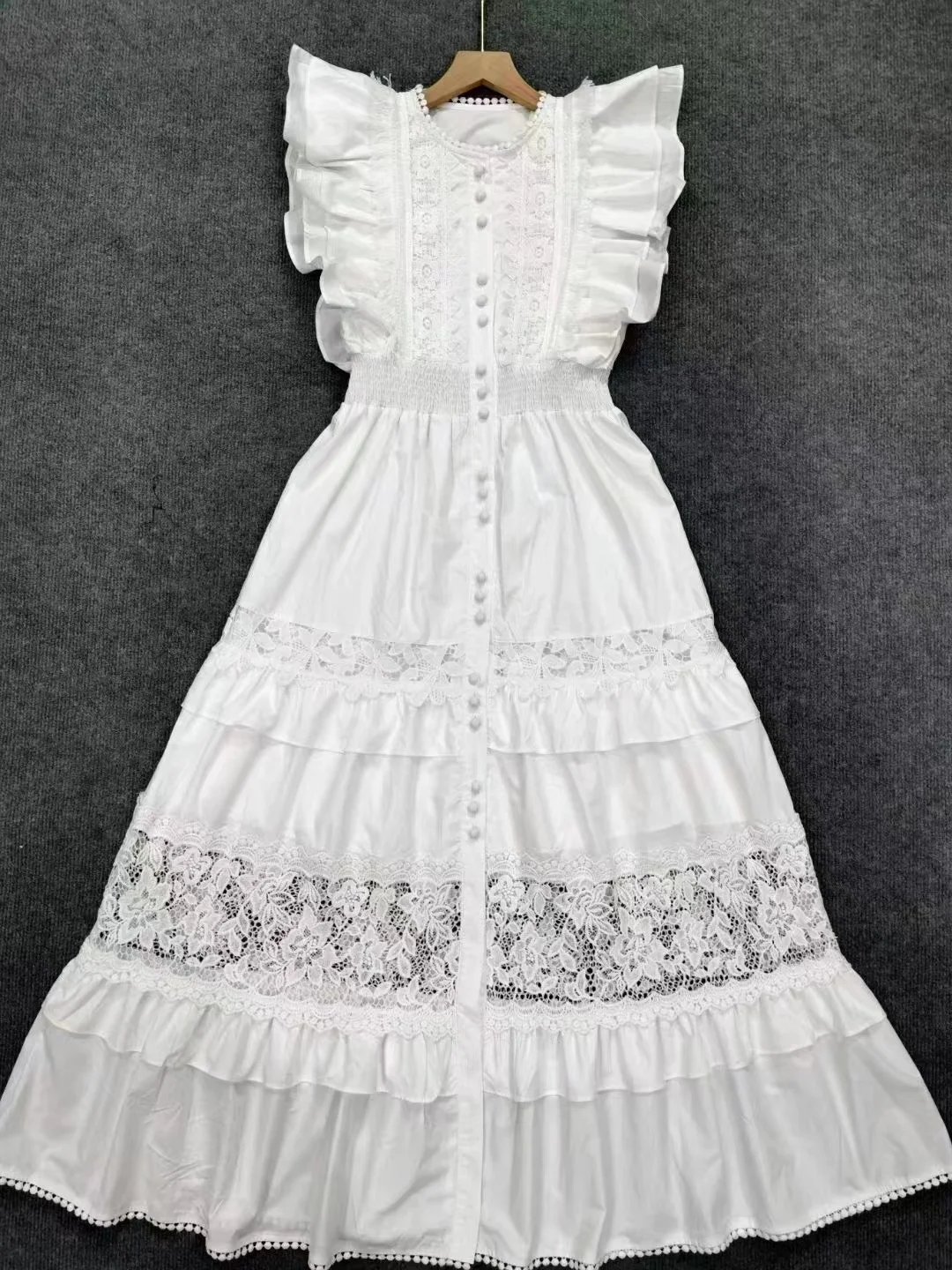 Bettergirl Fashion Dress 2023 Trendy Elegant A-line Lace Patchwork Fringed Women lace hem slim vintage long women dress