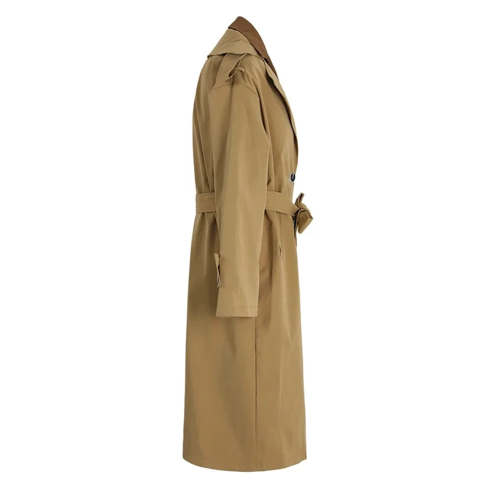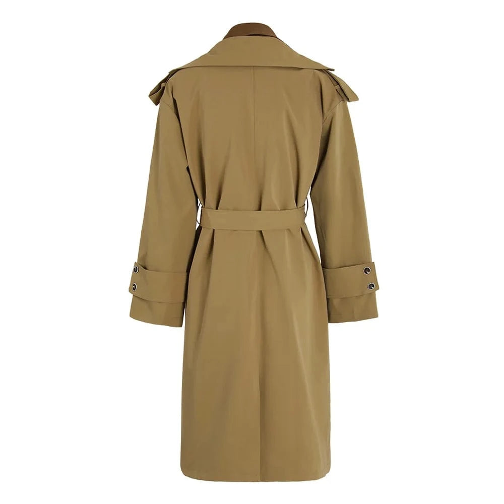 Bettergirl Fashion Patchwork V-neck Khaki Loose Trench Coat Women's Clothing 2024 Spring High Quality Elegant Women's Dresses