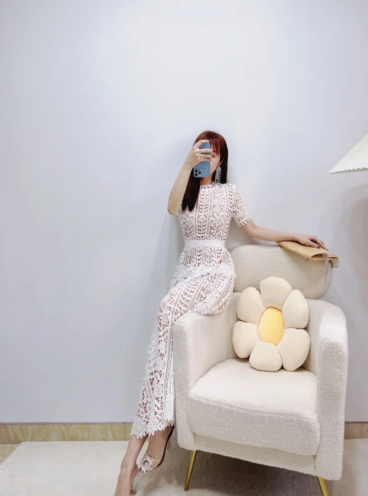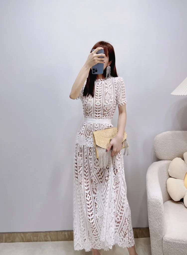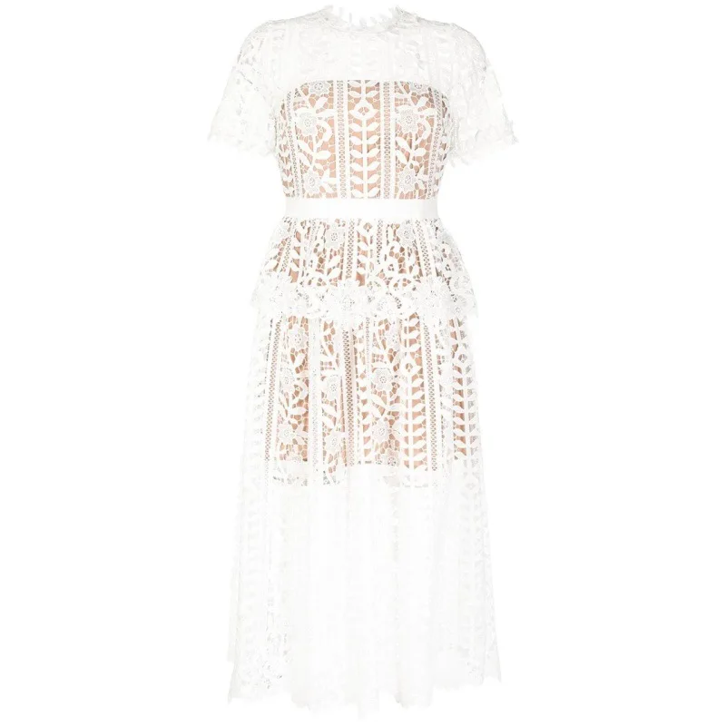 Bettergirl Wholesale Fashion 2023 Lace Crew Neck Short Sleeves Evening Floral Party Casual Dresses Women Lady Elegan