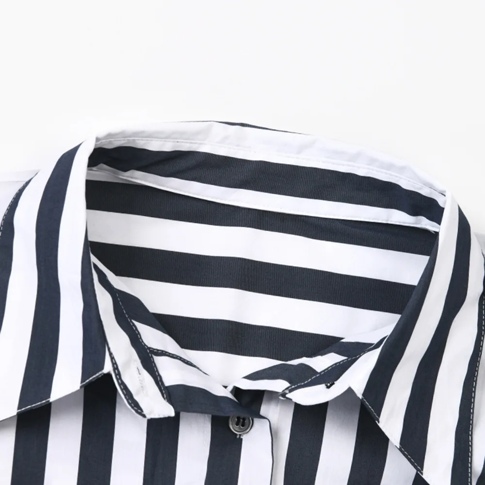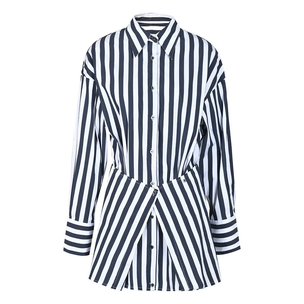 Bettergirl Women's New Autumn Design Sense Stripe Irregular Stitching Shirt Simple Casual Loose Slimming Shirt