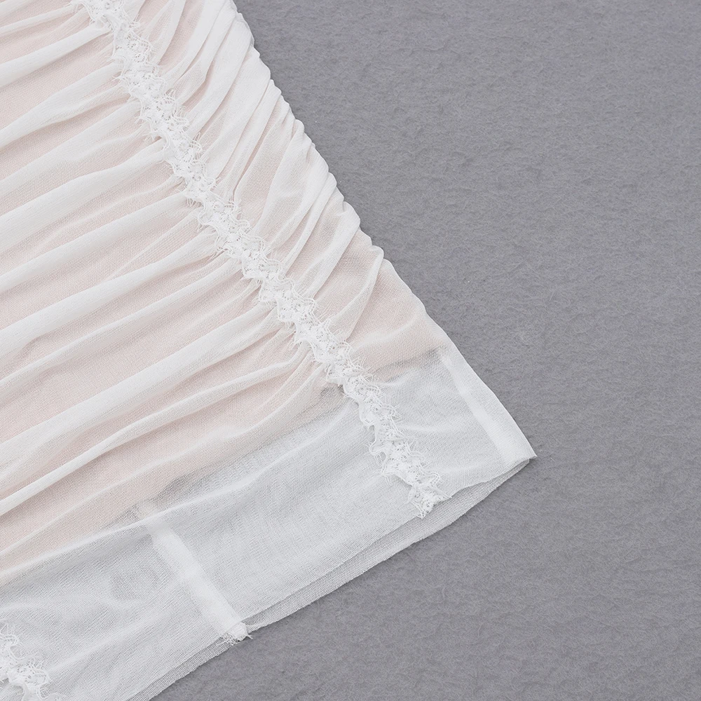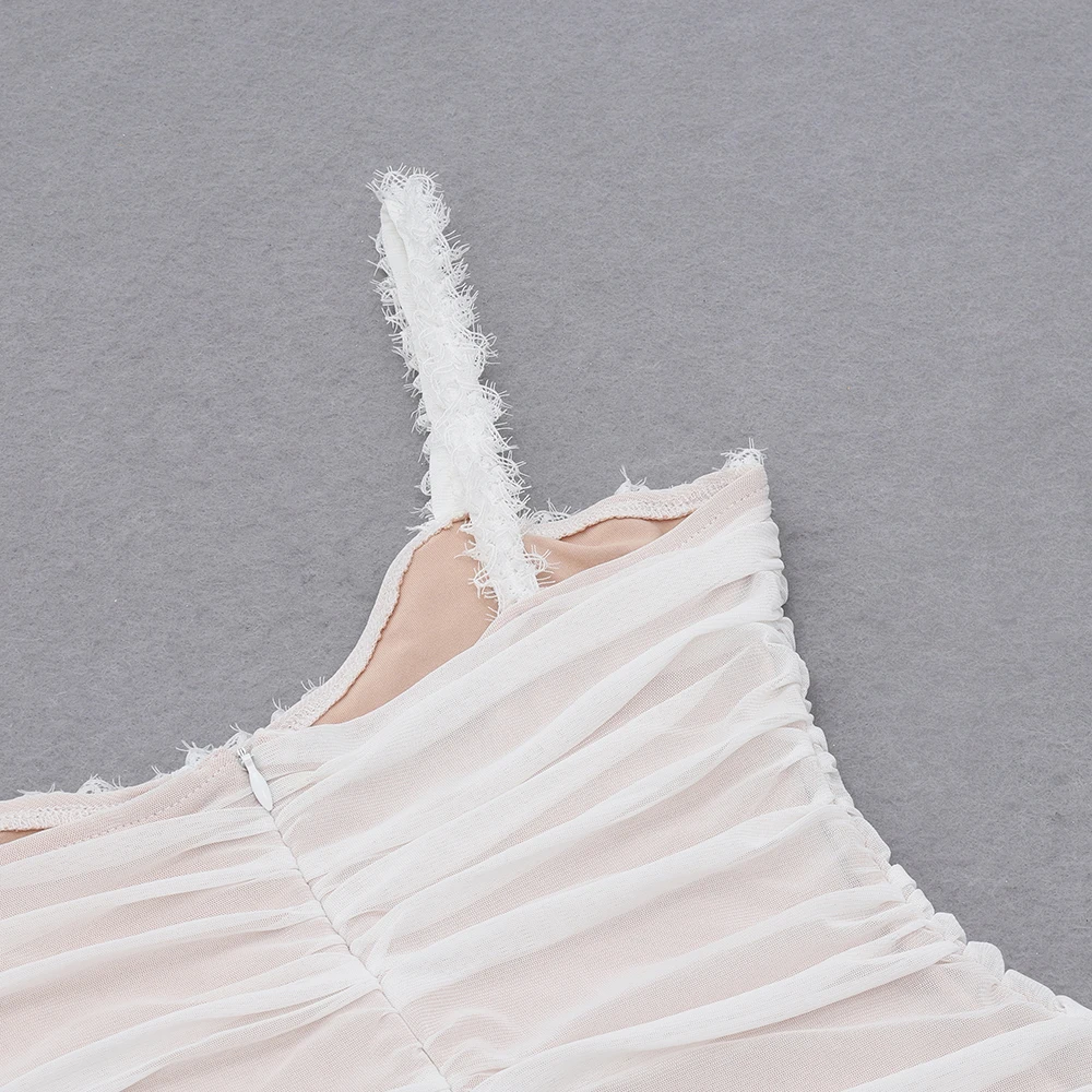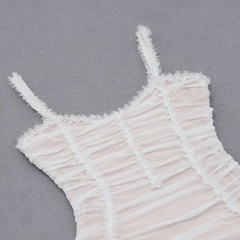 BH7358 Mini Vestidos Ruched Dress Lace Spaghetti Strap Street Wear Casual Ladies Celebrity White Dress