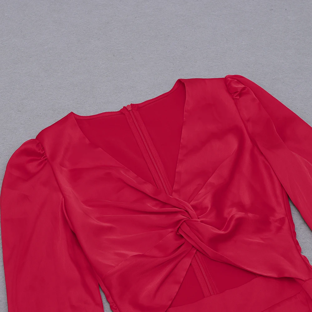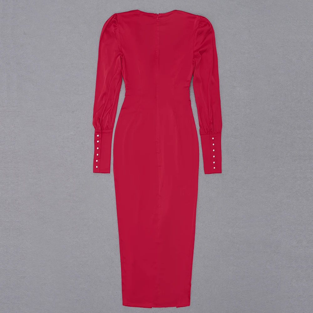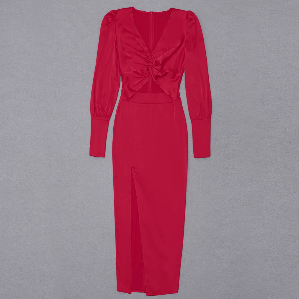 BH7459 Fashion Small V-Neck Bodycon Slit Dinner Party Dress Hollow Long Sleeve Sexy Cocktail Dress