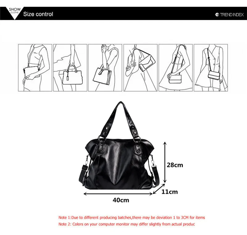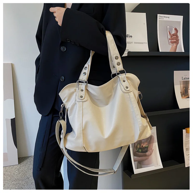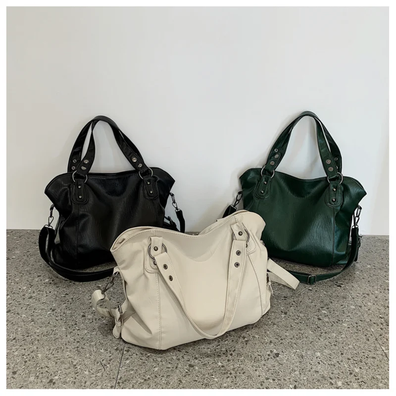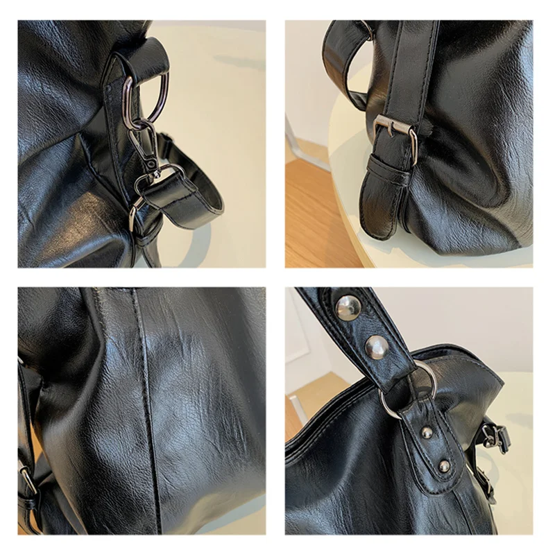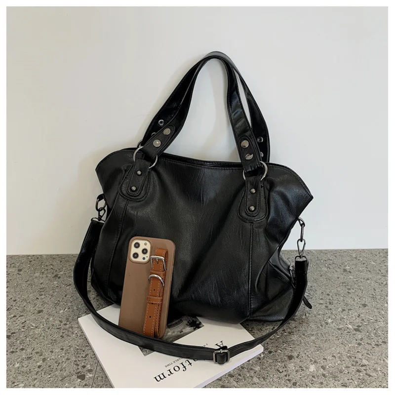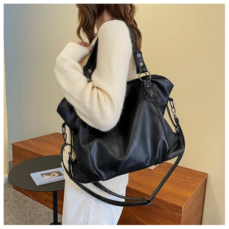 Big Black Shoulder Bags for Women Large Hobo Shopper Bag Solid Color Quality Soft Leather Crossbody Handbag Lady Travel Tote Bag