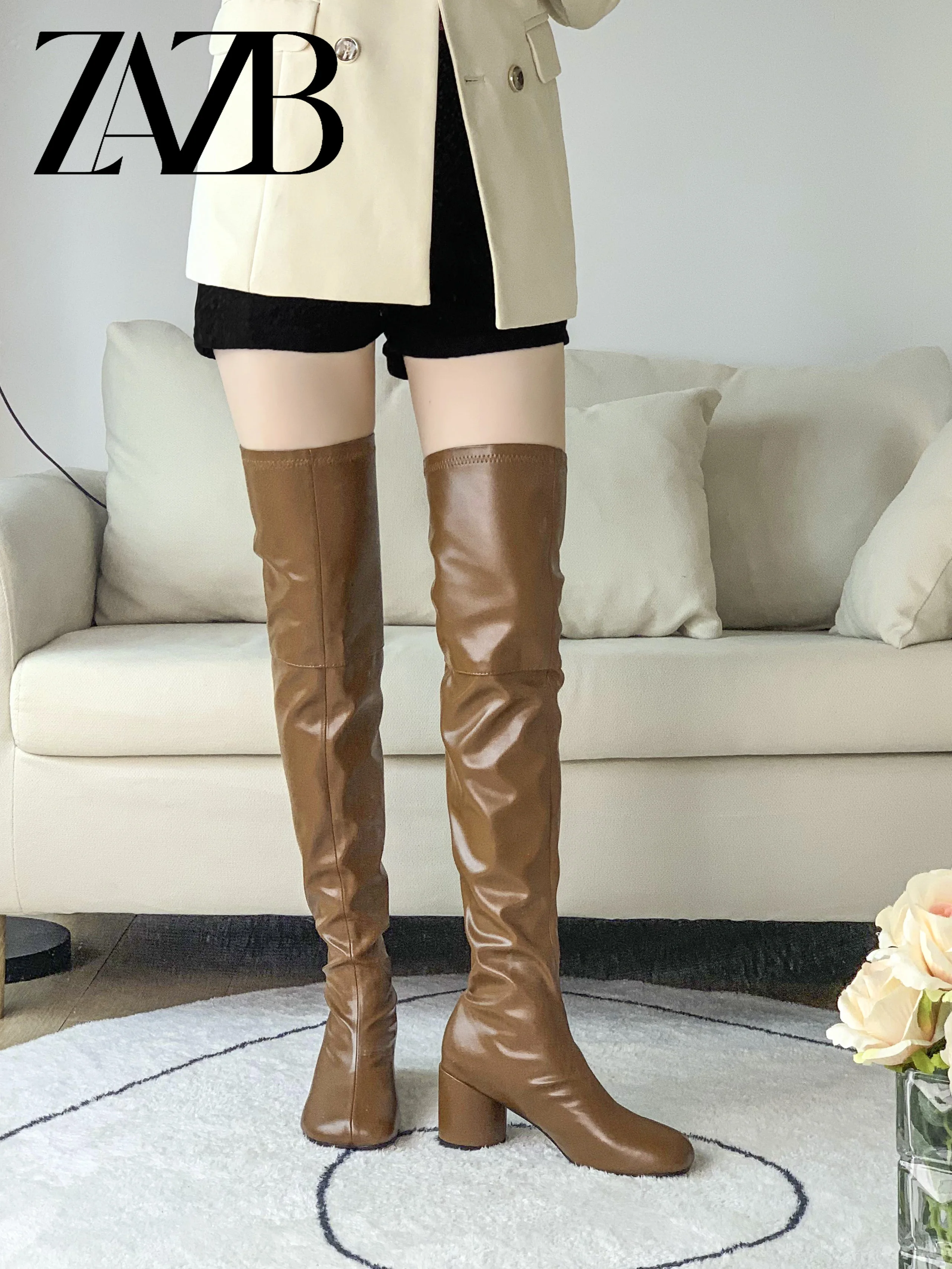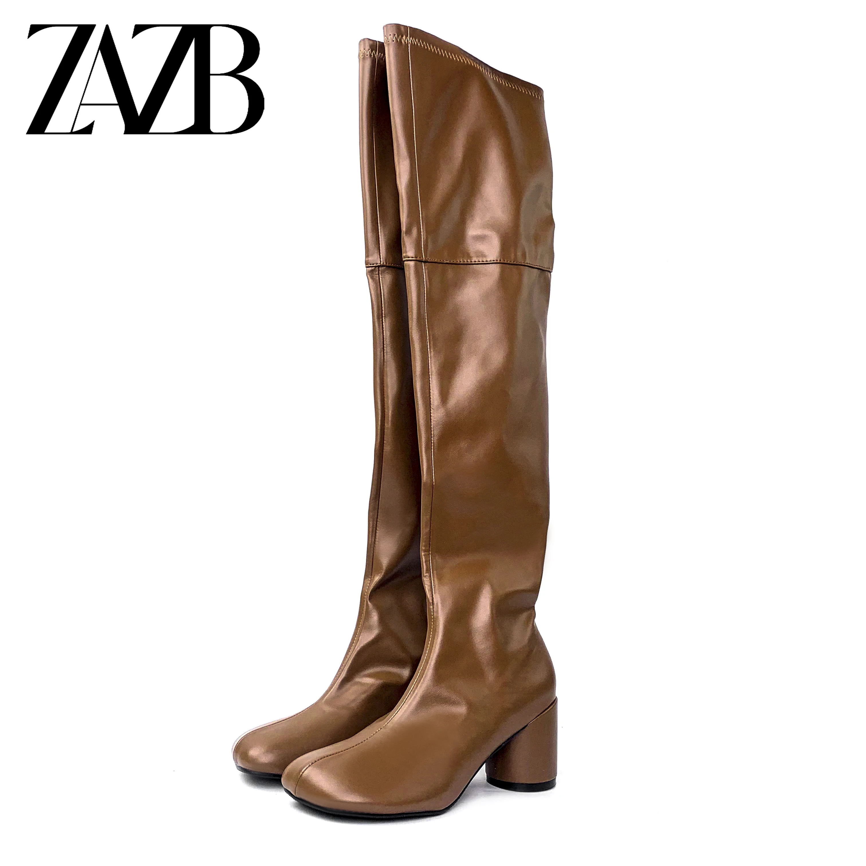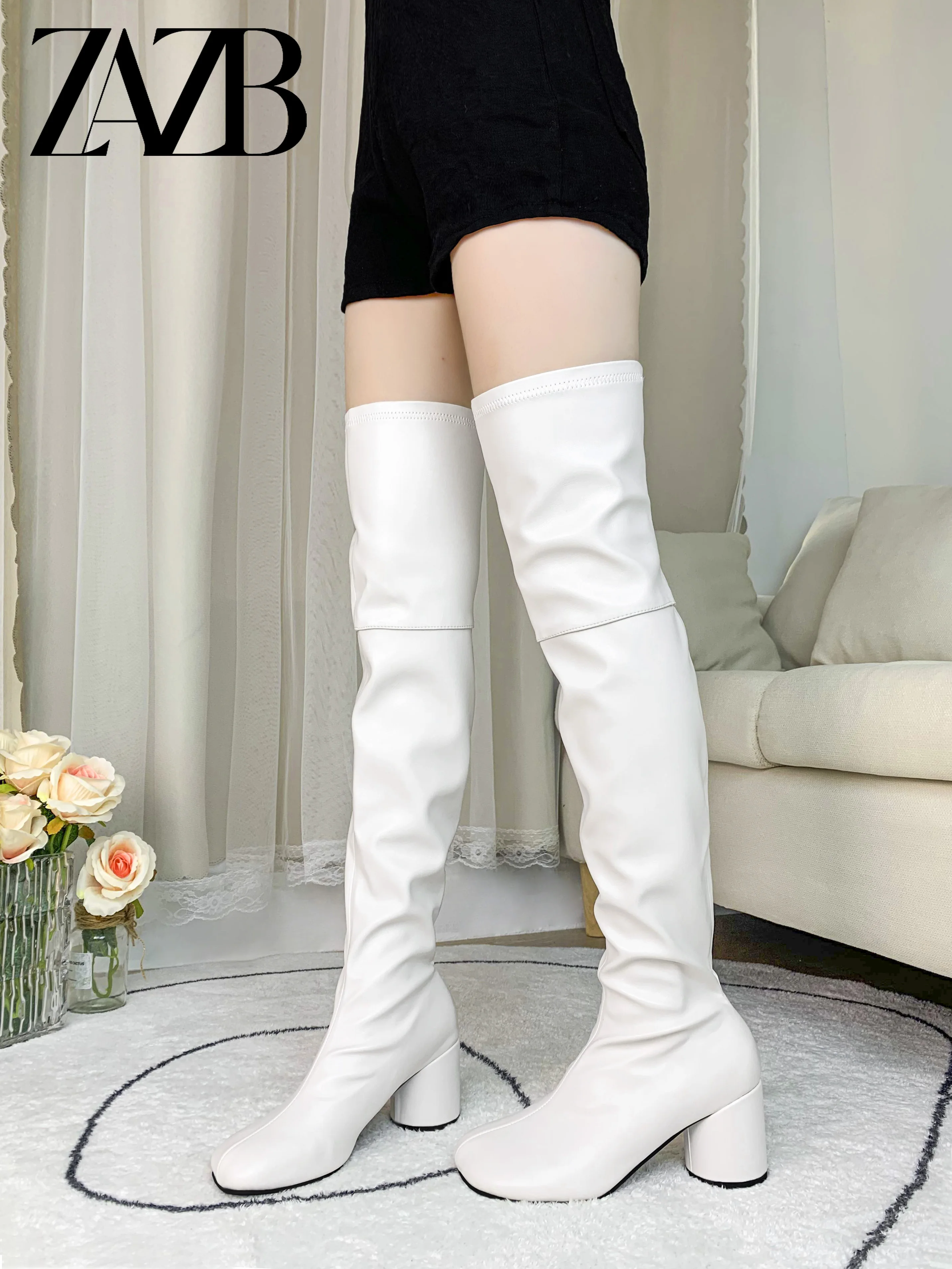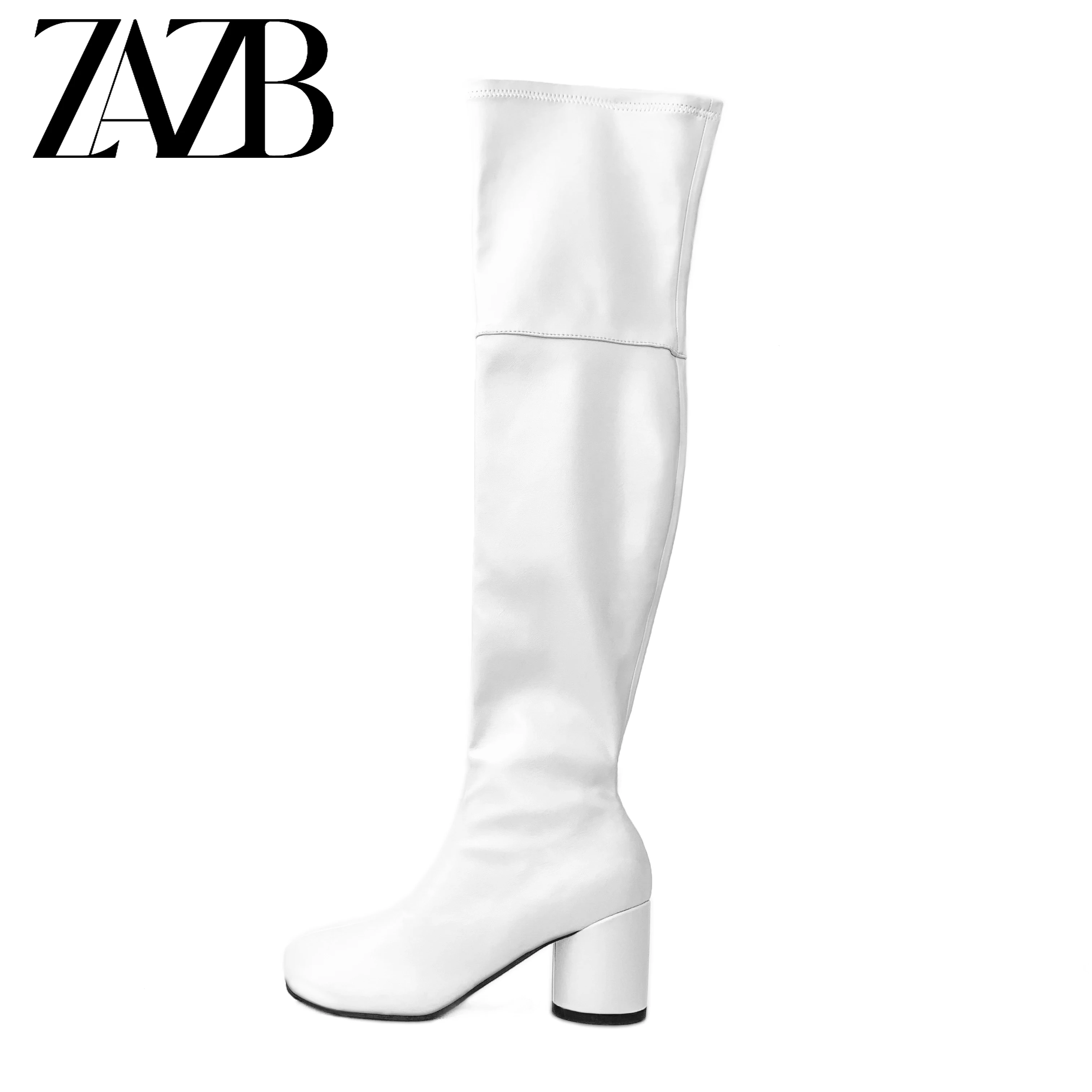 Big sexy booty Winter Autumn women's thigh high boots Square head chunky Thick heel zipper white knee leather ladies shoes