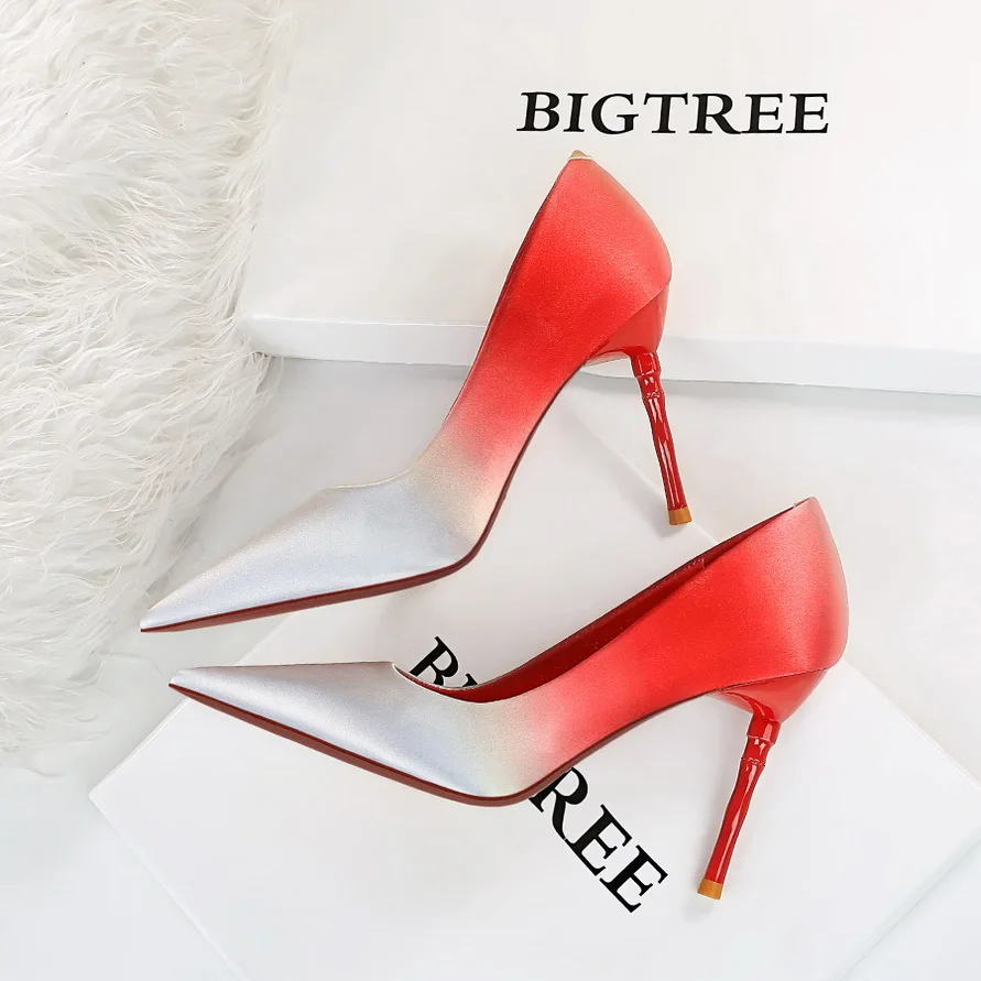 BigTree Rainbow single shoes High Heel Sandals Red Black Office Fashion Shoes