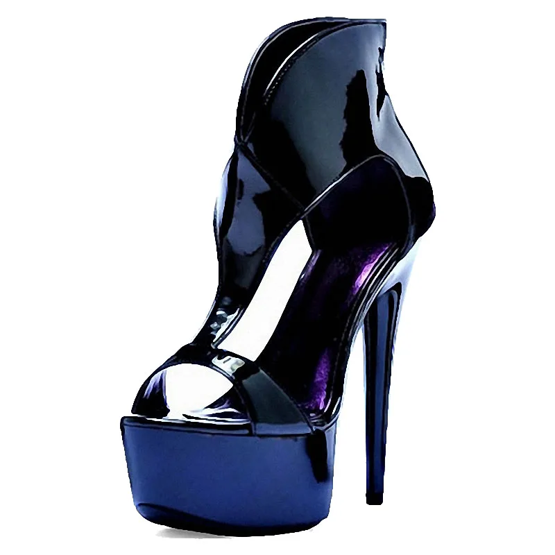 Black 15cm stiletto fashion high heels nightclub fun stripper platform sandals Gothic large leaky toe high heels