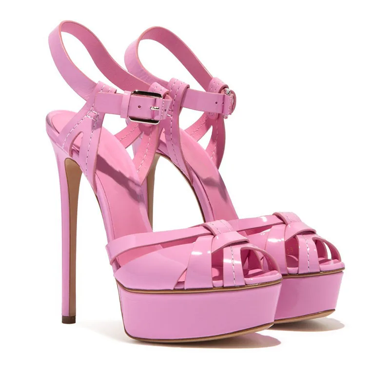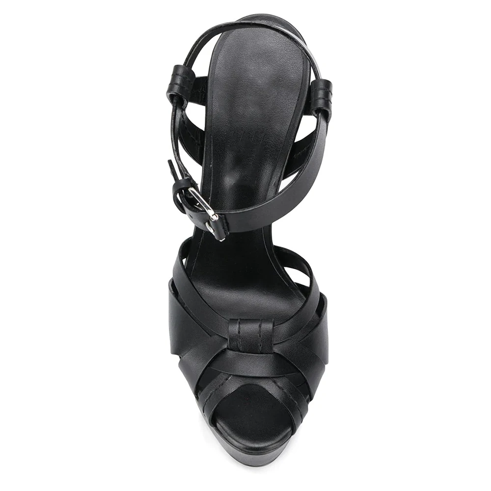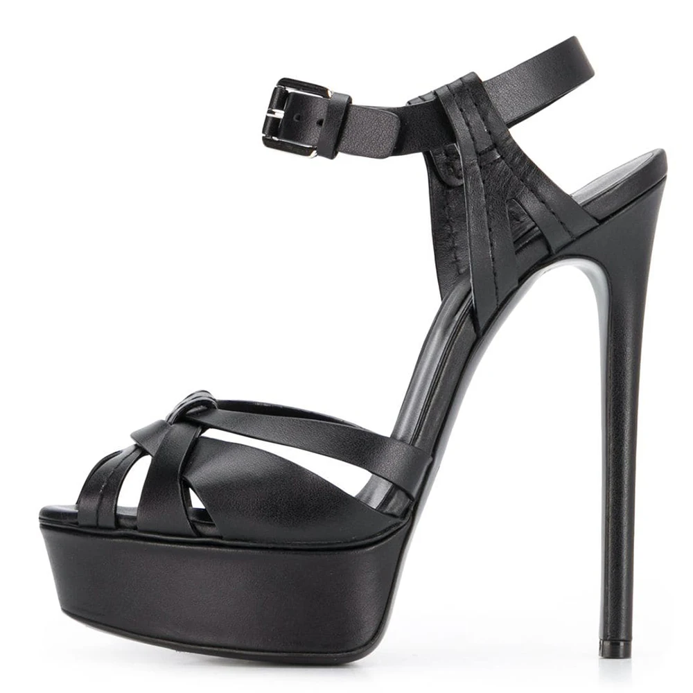 Black 15cm Stilettos Peep Toe Buckle Strap High Heels Sandals For Women Platform Shoes