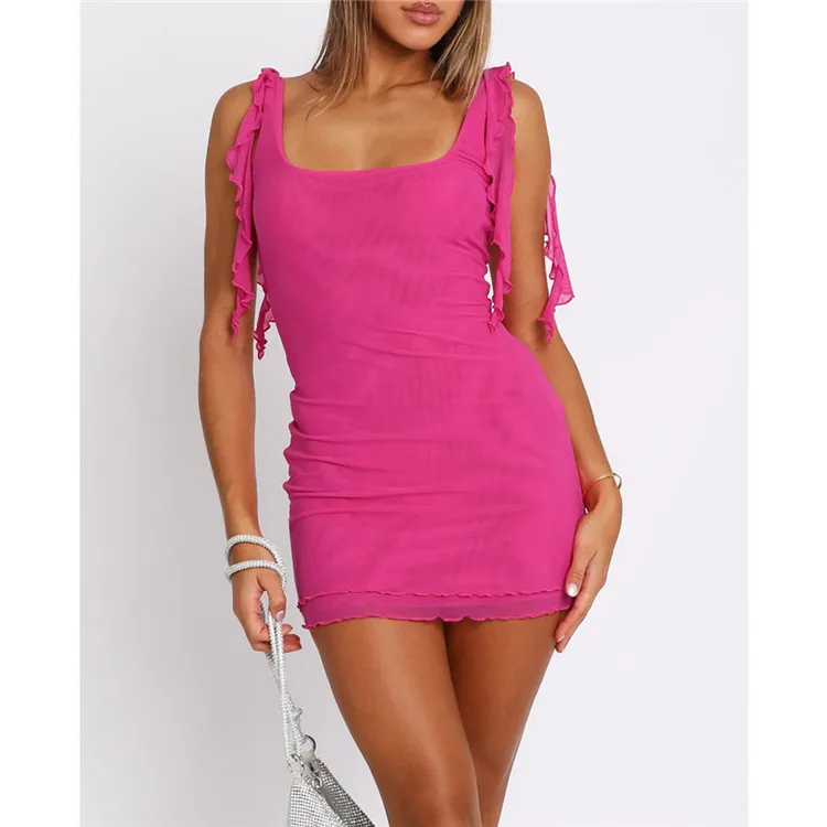 Black Backless Mini Dress Summer Outfit For Women Pink Bodycon Booty Short Mesh Off Shoulder Dresses Xs