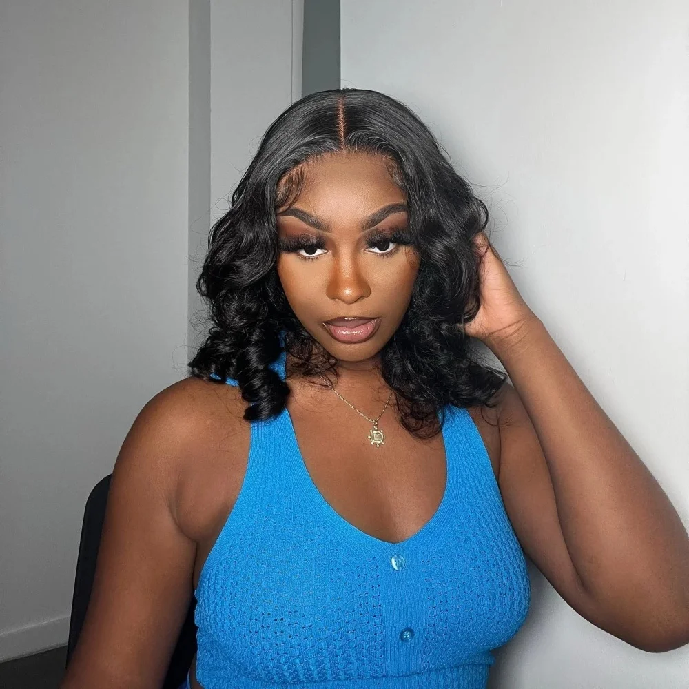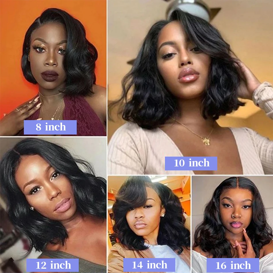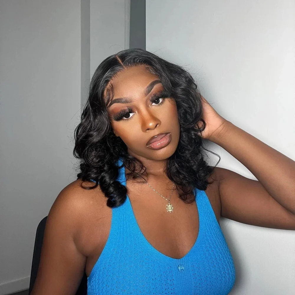 Black Body Wave Bob Wigs 13x4 Lace Frontal 4x4 Closure Lace Front Pre Plucked 100% Human Hair Wig Loose Water Wave Short Bob Wig