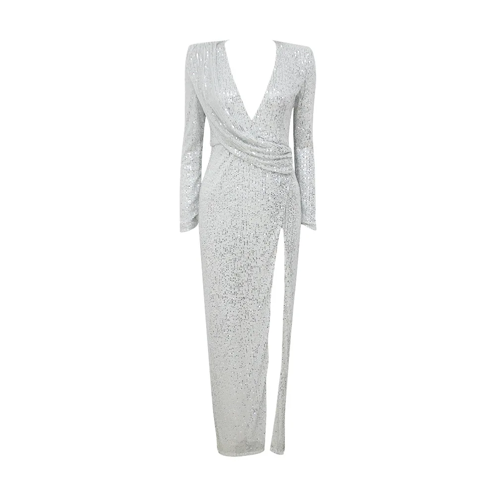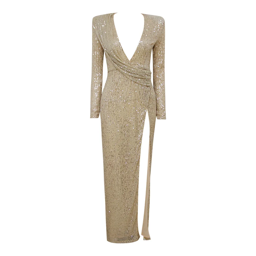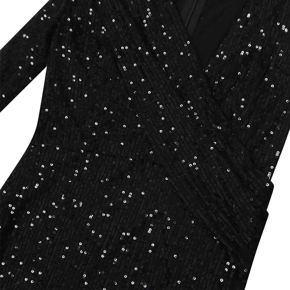 Black Long Sleeves Sequined Dresses High Split Party Dresses Women Evening Elegant Dress