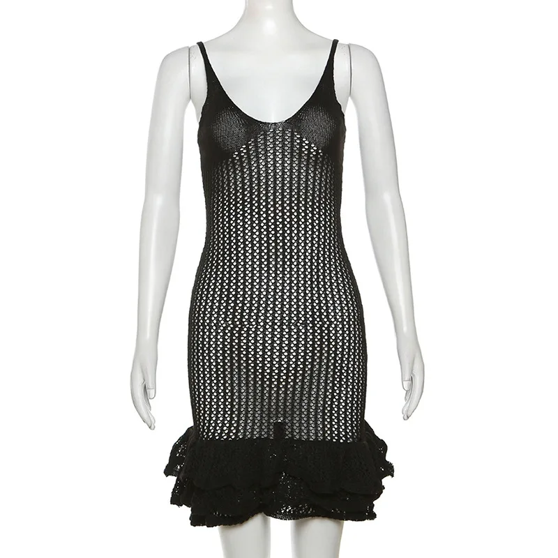 Black Sleeveless Party Ladies Maxi Hoodie Dress Woman One Piece See Through Sexy Club Backless Summer Long Women's Dresses