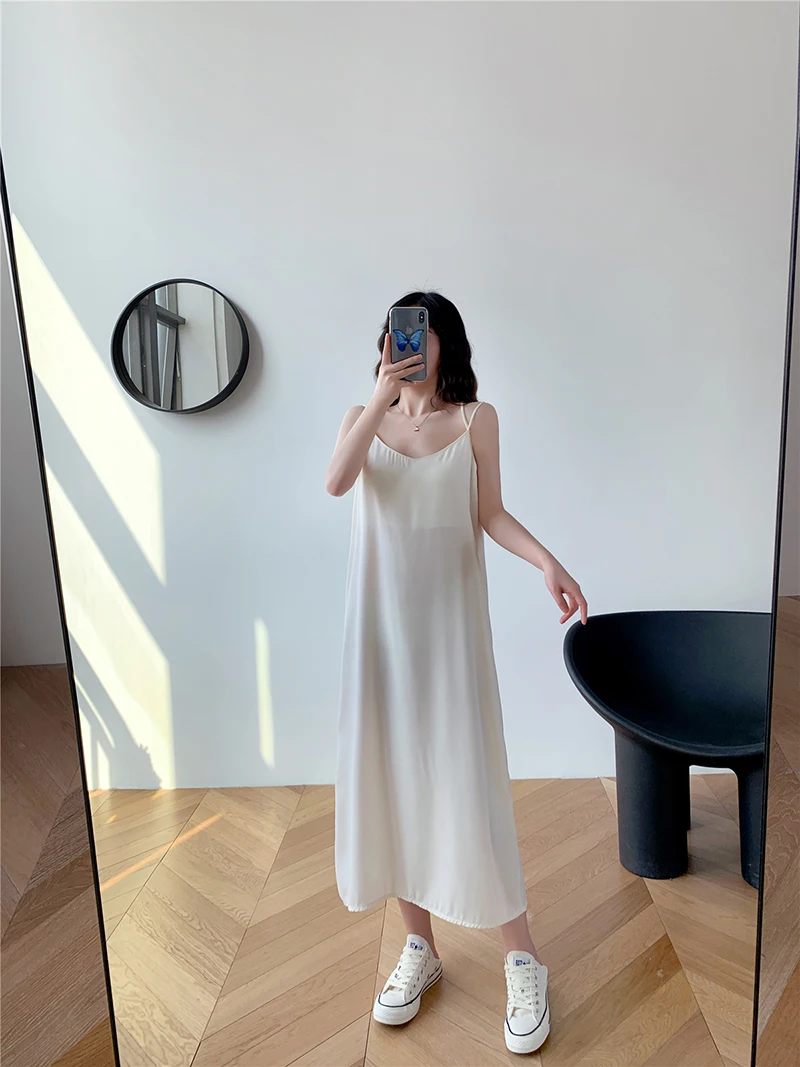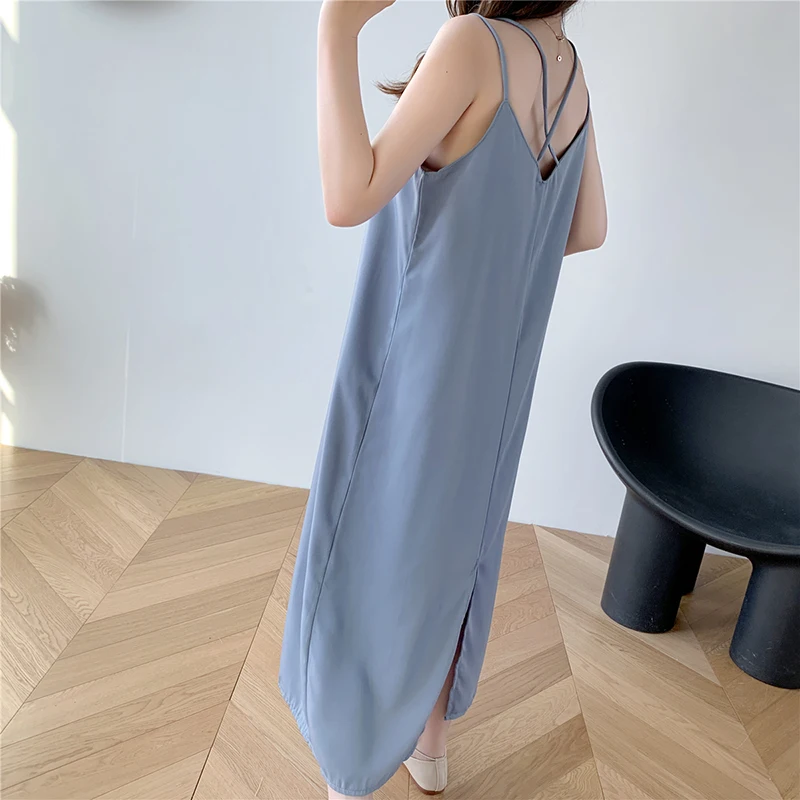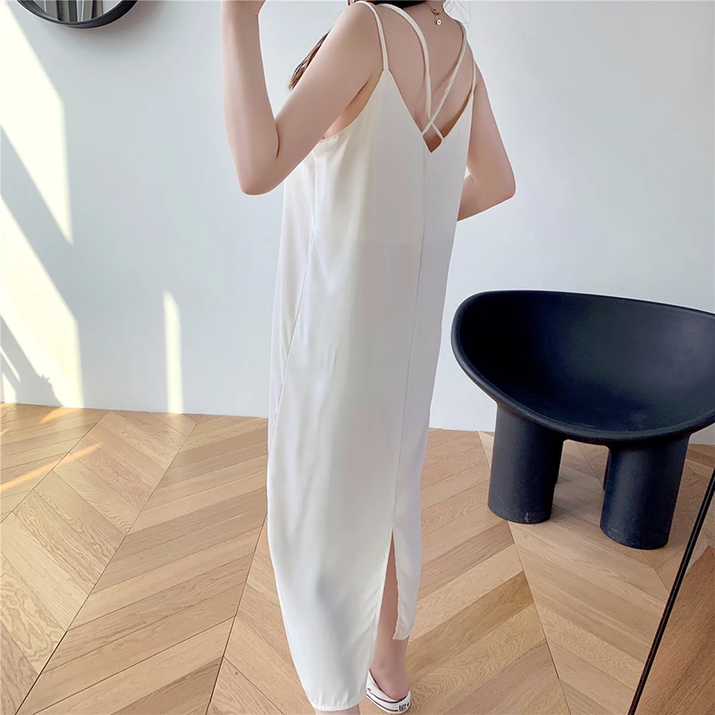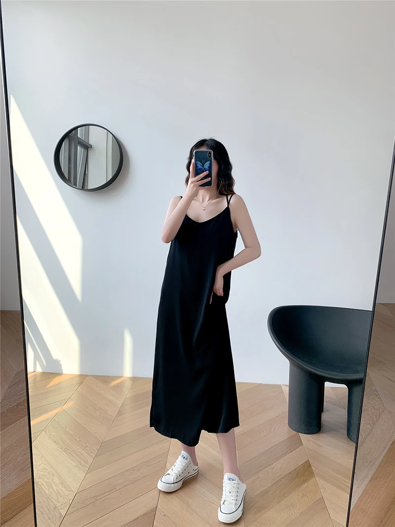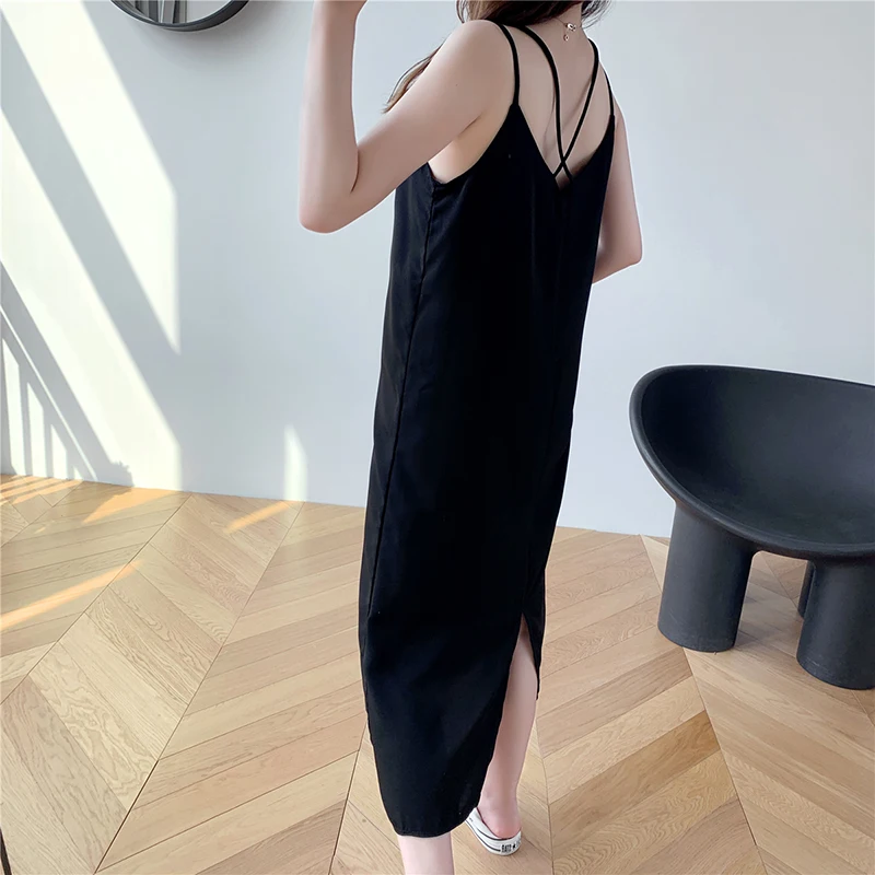 Black Strap Midi Dress Women Solid Elegant Sexy Backless Crossed Loose Plus Size Chiffon Dresses Office Ladies Basic Sundress