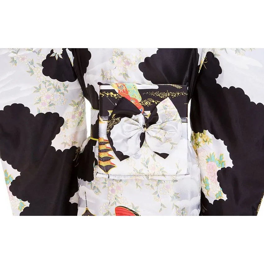 Black Woman Lady Japanese Tradition Yukata Kimono With Obi Flower Vintage Evening Dress Cosplay Costume One size ZW01