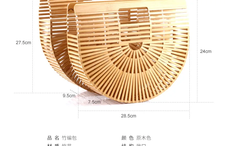 Blast bamboo hand bag handmade semi-circle outdoor beach bags holiday rattan braided women handbag