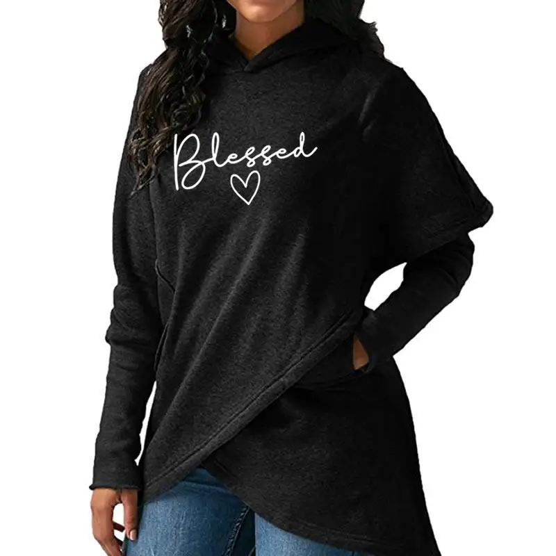 blessed Fashion Women Hoodies Sweatshirts Long Sleeve Cross irregular Pullover Loose Jumper Hooded Sweatshirt Hoodies Tops