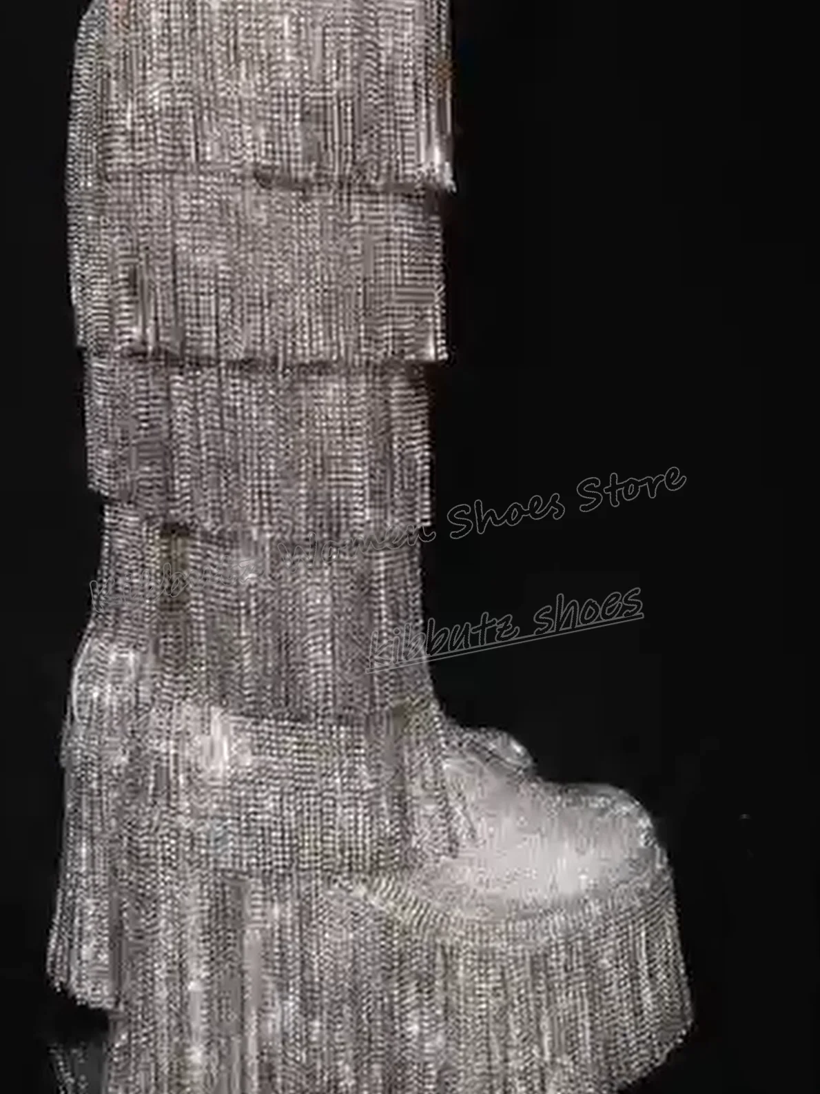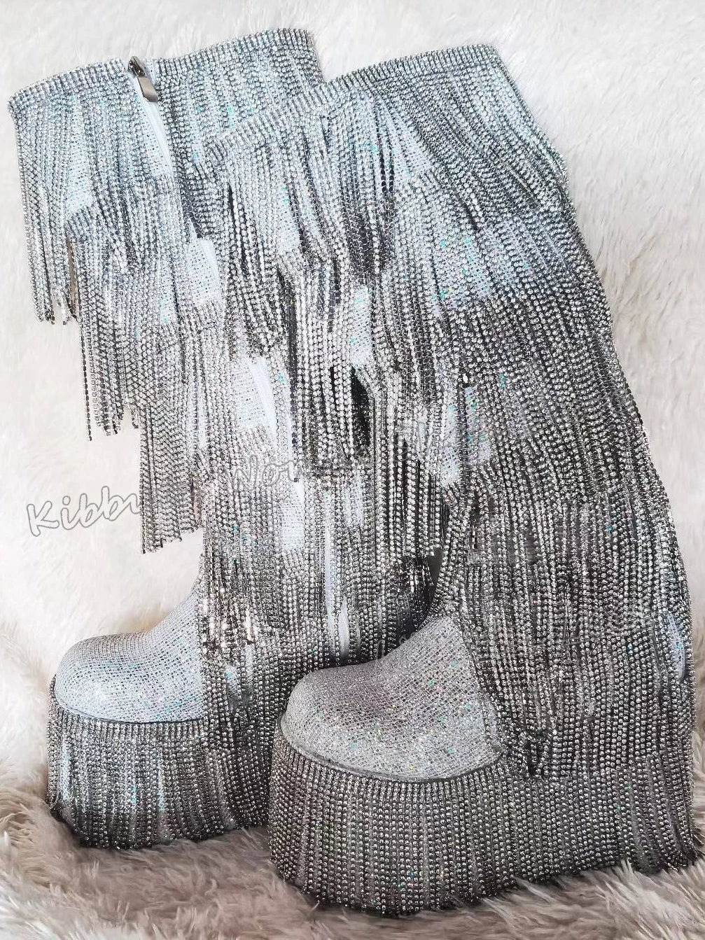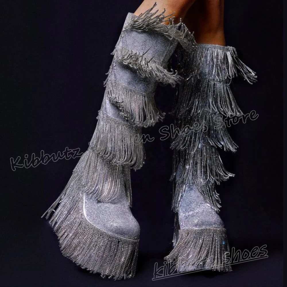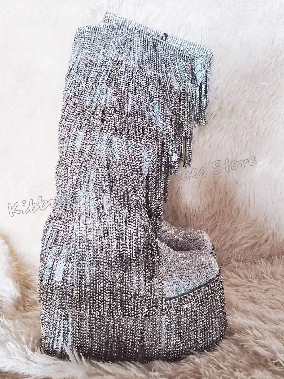 Bling Knee High Boots Platform Glossy Round Toe Thick Bottom Zipper Fashion Luxury Elegant Concise Sexy Novelty Women Shoes New