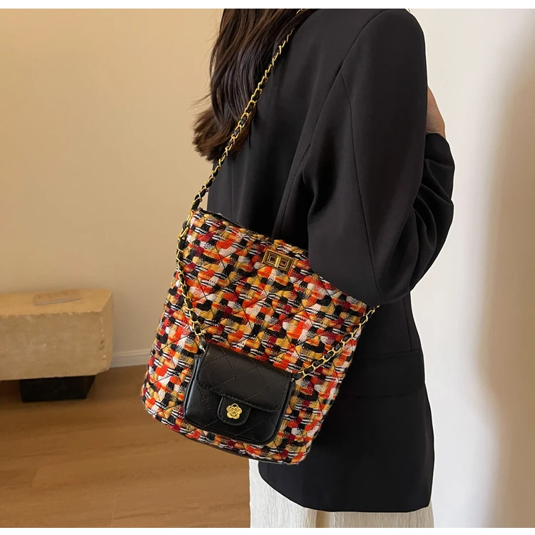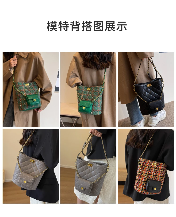 Bm9457 New Product Lingge embroidery thread Bucket bag With Matching Color Bag Women Handbags For Women
