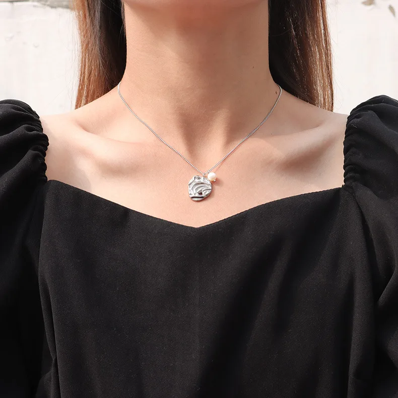 Bohemian Natural Freshwater Pearls Hammered Irregular Pendant Chokers Necklaces Dainty Stainless Steel Jewelry Wholesale