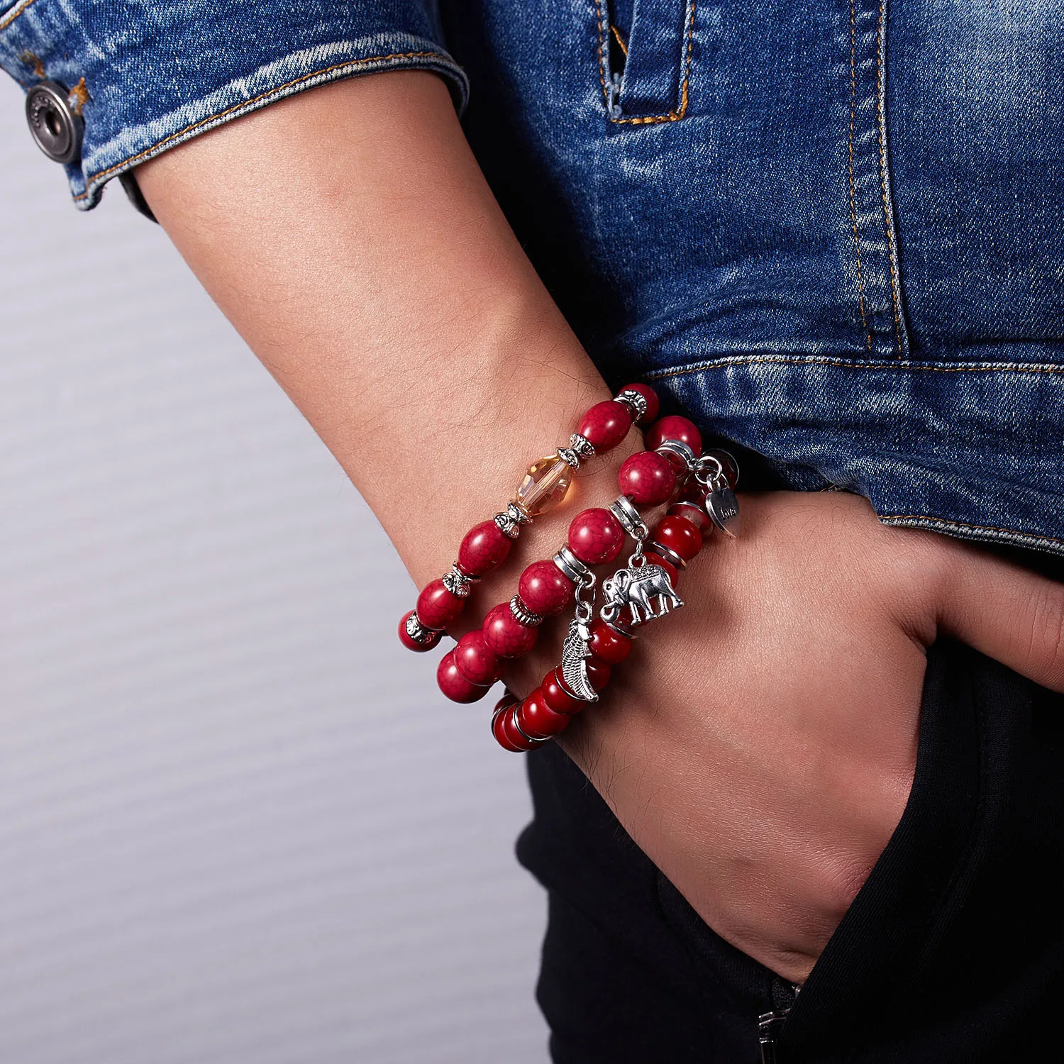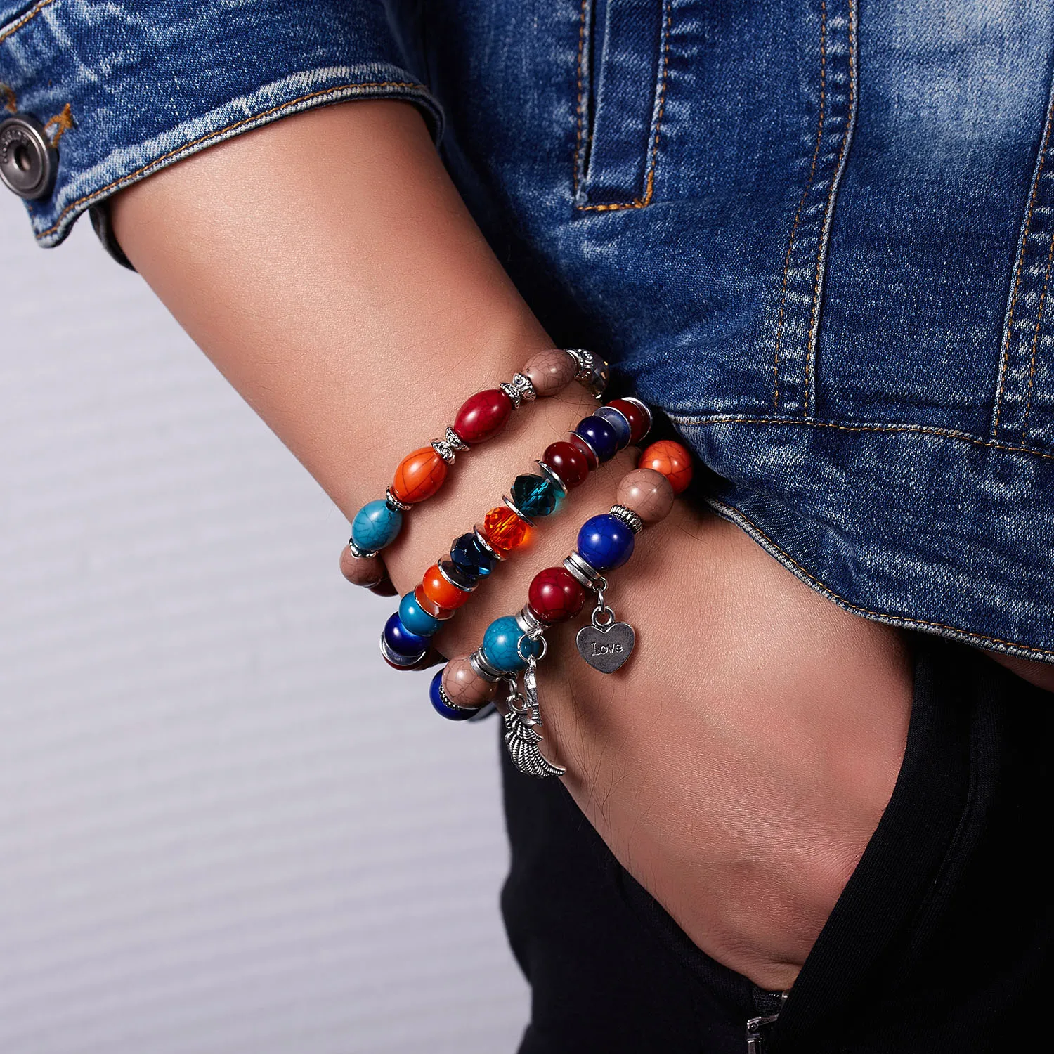 Bohemian Stackable Bead Bracelets for Women Charms Set Stretch Multilayered Glass Beads Bracelet Jewelry